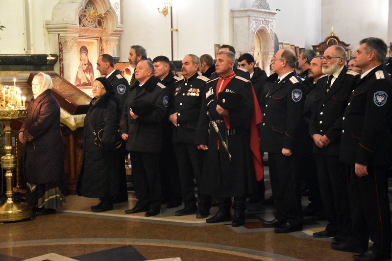 Торжественное богослужение традиционно прошло в Войсковом соборе. Литургию провел митрополит Екатеринодарский и Кубанский Исидор, а также Владыка Дионисий, епископ Туапсинский. На службе вместе с прихожанами и казачьими семьями присутствовали заместители атамана Кубанского казачьего войска – Николай Перваков, Валерий Ефремов и Константин Перенижко, атаман Екатеринодарского отдела Виктор Светличный, атаман Екатеринодарского РКО, первый заместитель главы города Краснодара Сергей Васин и лидер Союза казачьей молодежи Кубани Александр Агибалов.