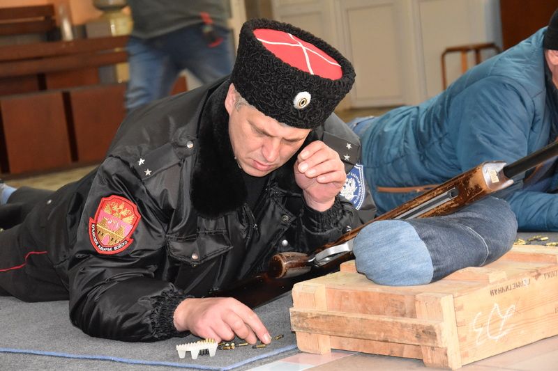 Пока не боевое, а спортивную малокалиберную винтовку. Традиционно казаки краевой столицы соревнуются в пулевой стрельбе.