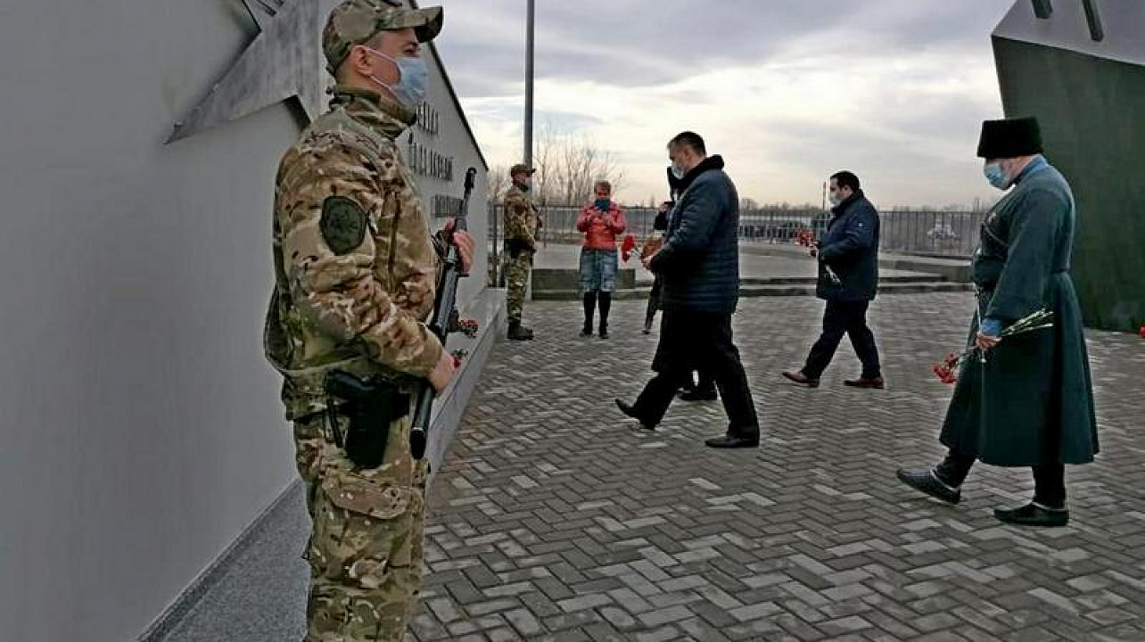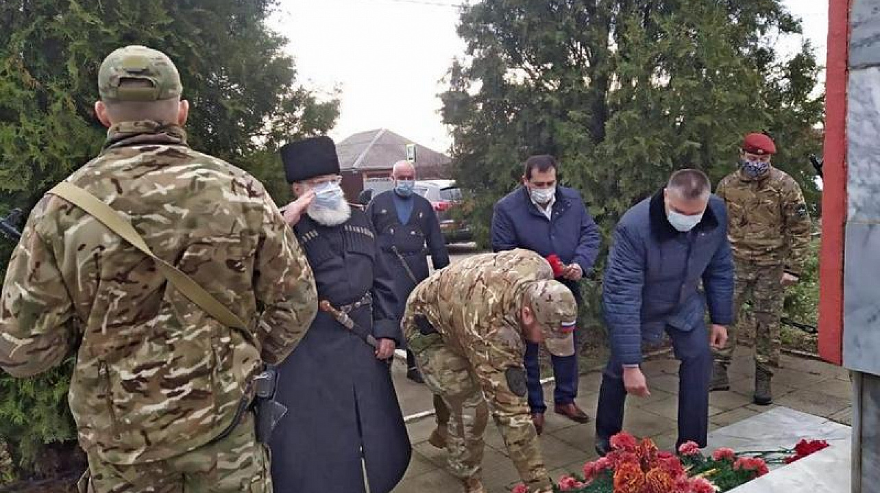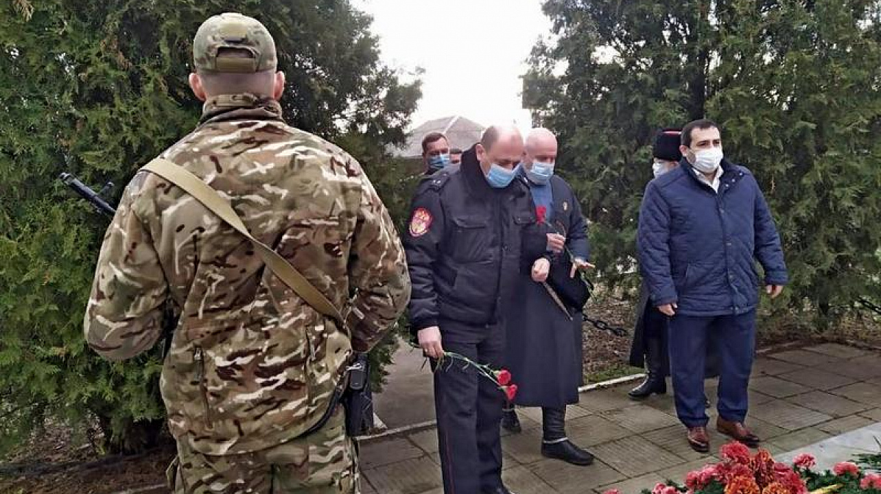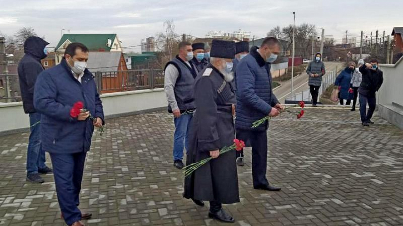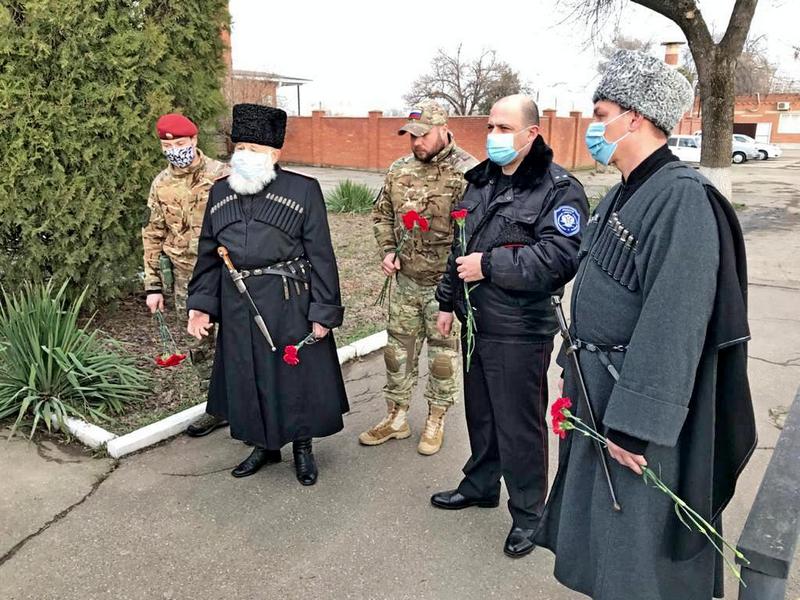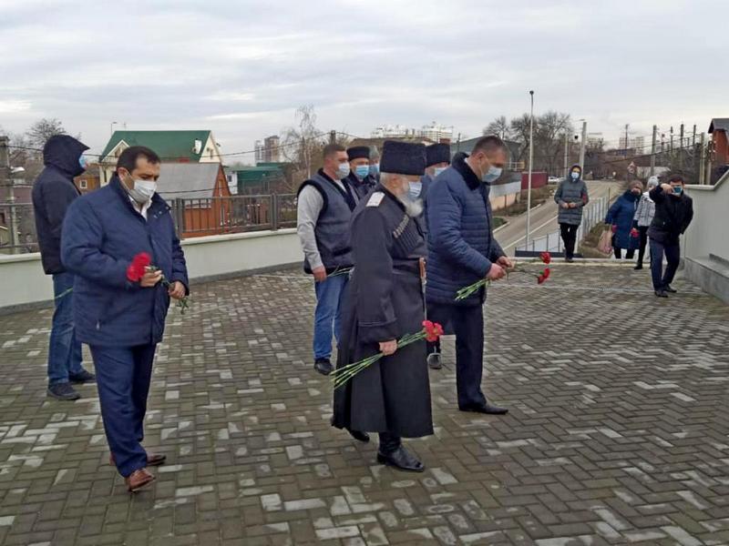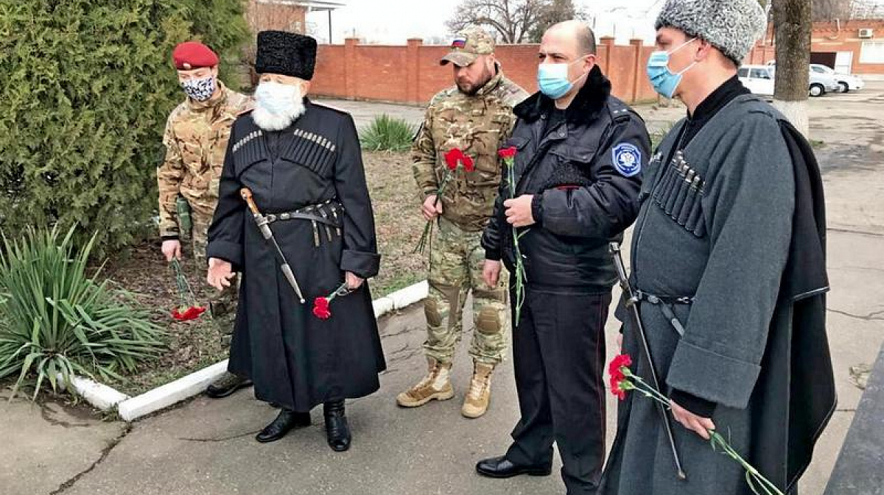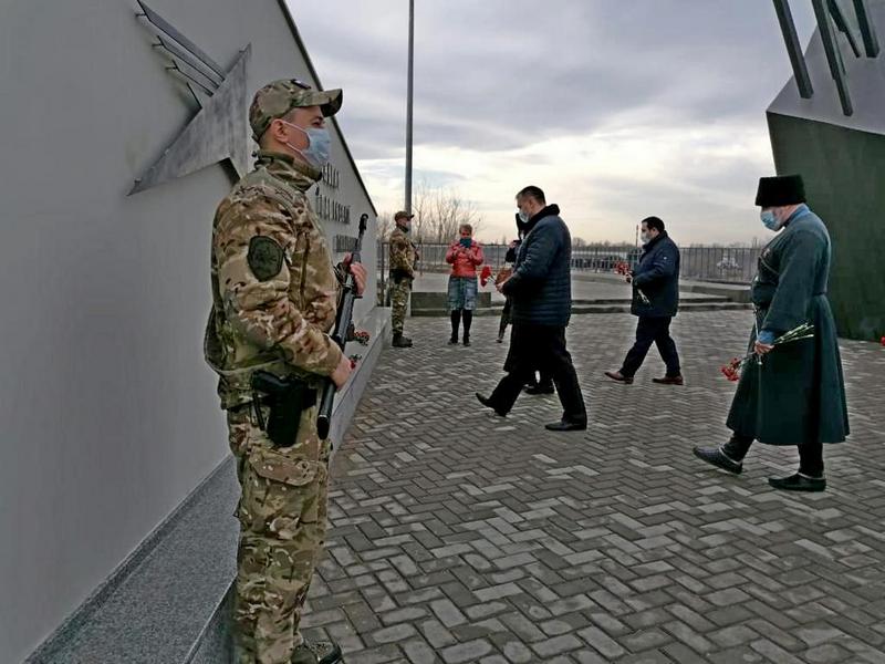 В знак памяти и скорби казаки возложили венки и цветы к мемориалу.