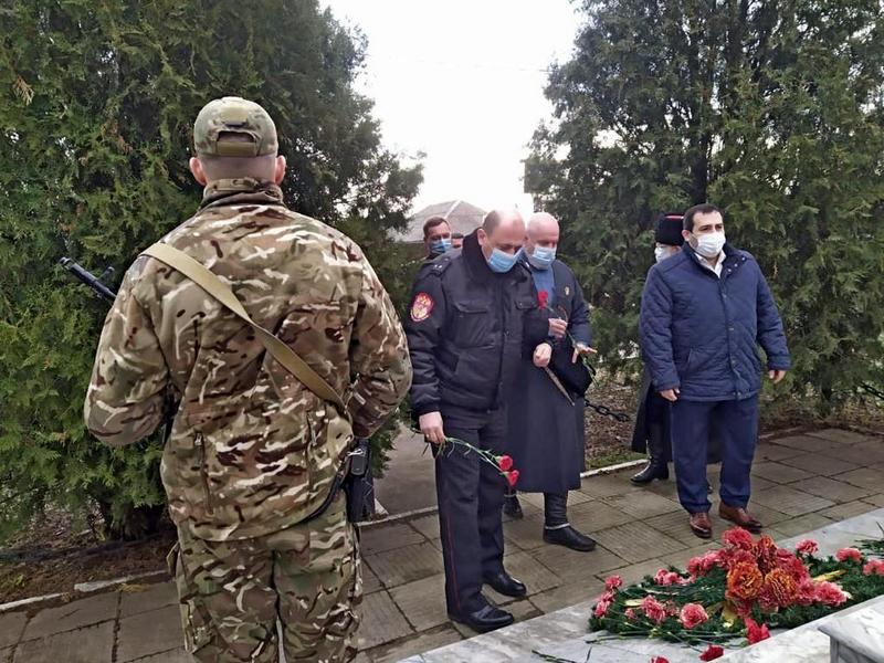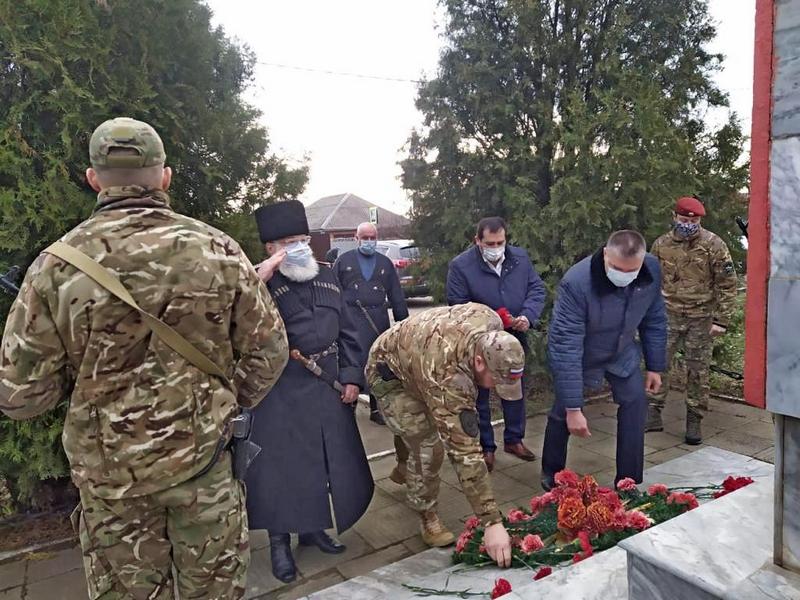 Казаки Пашковского СКО почтили память погибших минутой молчания на мемориальном комплексе защитникам Пашковской переправы и у памятника освободителям города Краснодара.