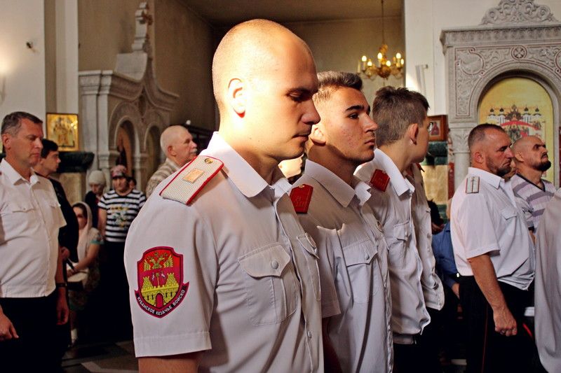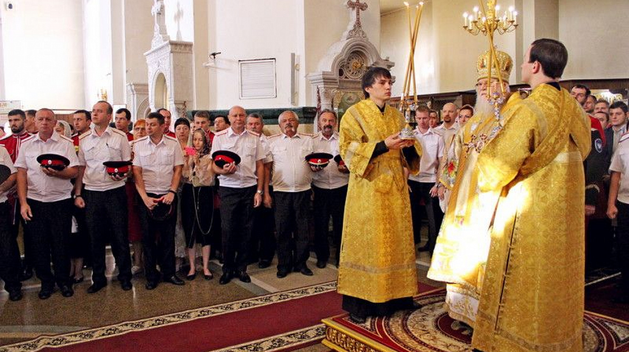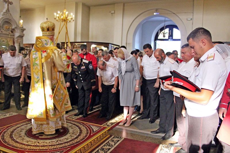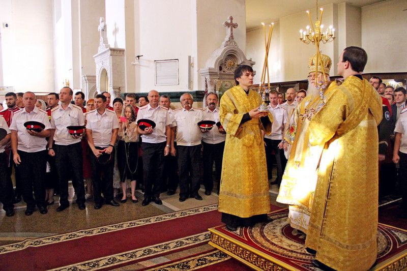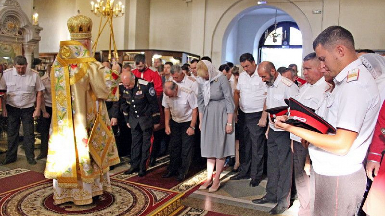 Торжественное богослужение традиционно прошло в Войсковом соборе. Литургию провел митрополит Екатеринодарский и Кубанский Исидор. В торжественной службе вместе с прихожанами приняли участие казаки Екатеринодарского районного казачьего общества во главе с Атаманом Кубанского казачьего общества казачьим генералом Николаем Долудой; ВрИО атамана Екатеринодарского РКО Василием Павликом; атаманами других районных обществ Екатеринодарского отдела; атаманами первичных казачьих обществ и командирами казачьих дружин краевой столицы.