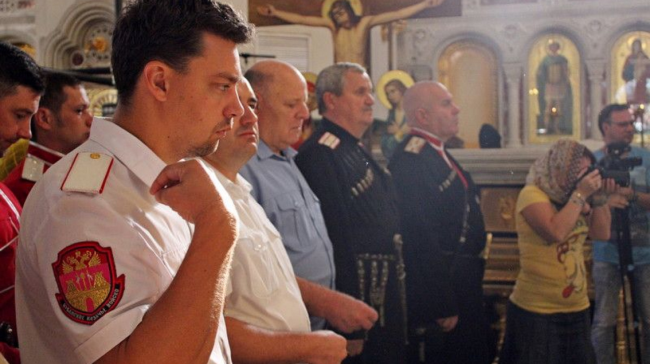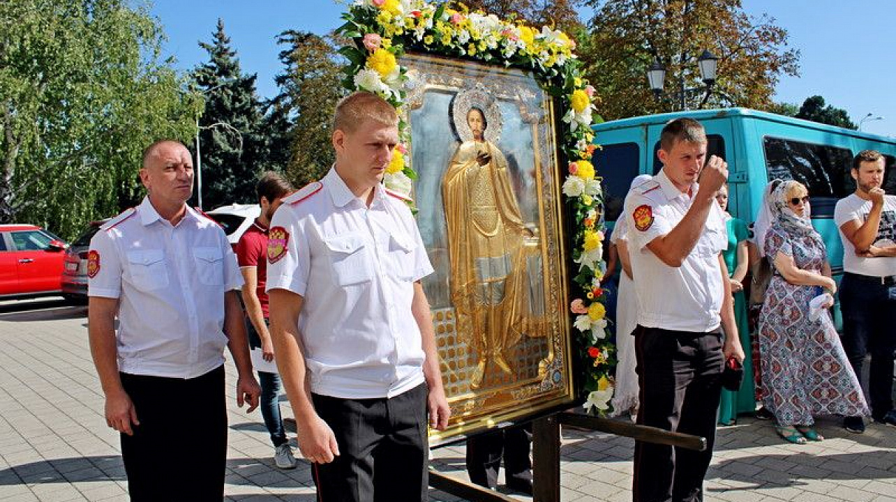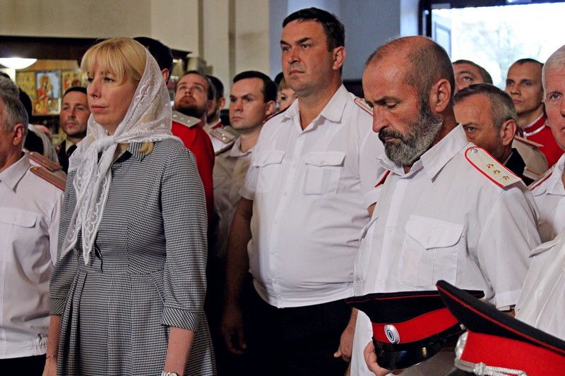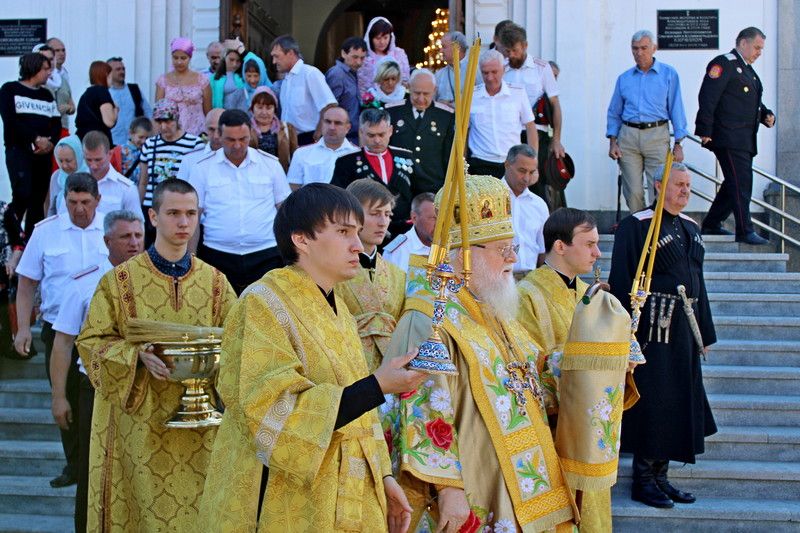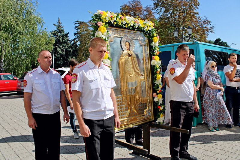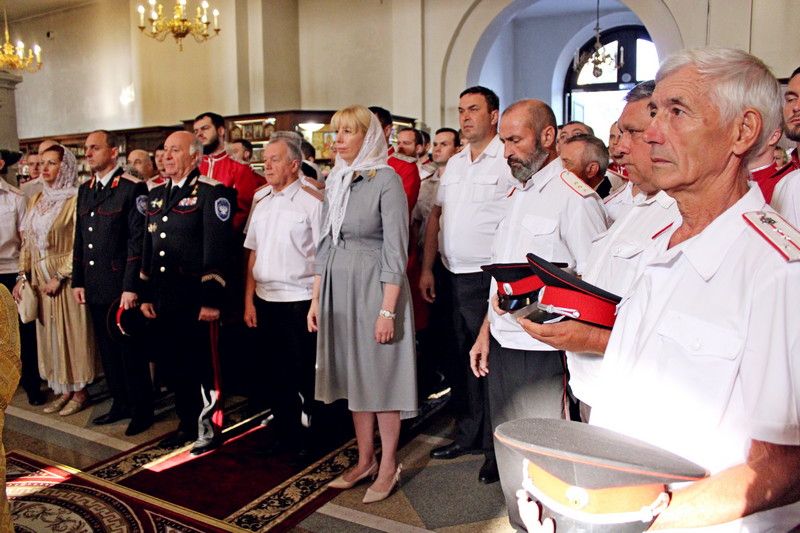 Торжественное богослужение традиционно прошло в Войсковом соборе. Литургию провел митрополит Екатеринодарский и Кубанский Исидор. В торжественной службе вместе с прихожанами приняли участие казаки Екатеринодарского районного казачьего общества во главе с Атаманом Кубанского казачьего общества казачьим генералом Николаем Долудой; ВрИО атамана Екатеринодарского РКО Василием Павликом; атаманами других районных обществ Екатеринодарского отдела; атаманами первичных казачьих обществ и командирами казачьих дружин краевой столицы.
