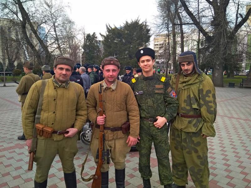 12 февраля в 76-ю годовщину освобождения города Краснодара от немецко-фашистских захватчиков казаки хуторского казачьего общества «Юго-западный курень» приняли участие в исторической реконструкции освобождения Краснодара в сквере имени Жукова.