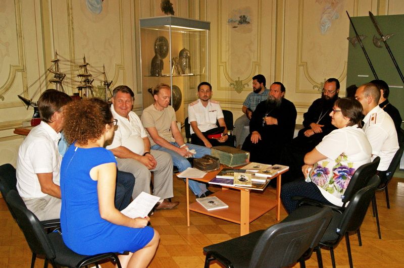 На круглом столе присутствовали: заместитель атамана ЕРКО по Карасунскому округу Юрий Шмельков; Духовник Екатеринодарского отдела ККВ иеромонах Спиридон; Духовник ЕРКО иерей Николай Симора; Настоятель храма всех Святых архимандрит Трифон; председатель краснодарского муниципального отделения Союза казачьей молодежи Кубани Виктор Шевченко, а так же научные сотрудники музея и казаки.