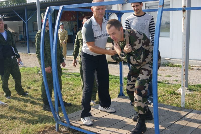 Сегодняшняя тренировка была приурочена к Дню Воздушно-десантных войск, опытные инструктора солдаты и офицеры ВДВ провели инструктаж с казаками на специальных тренажёрах.
