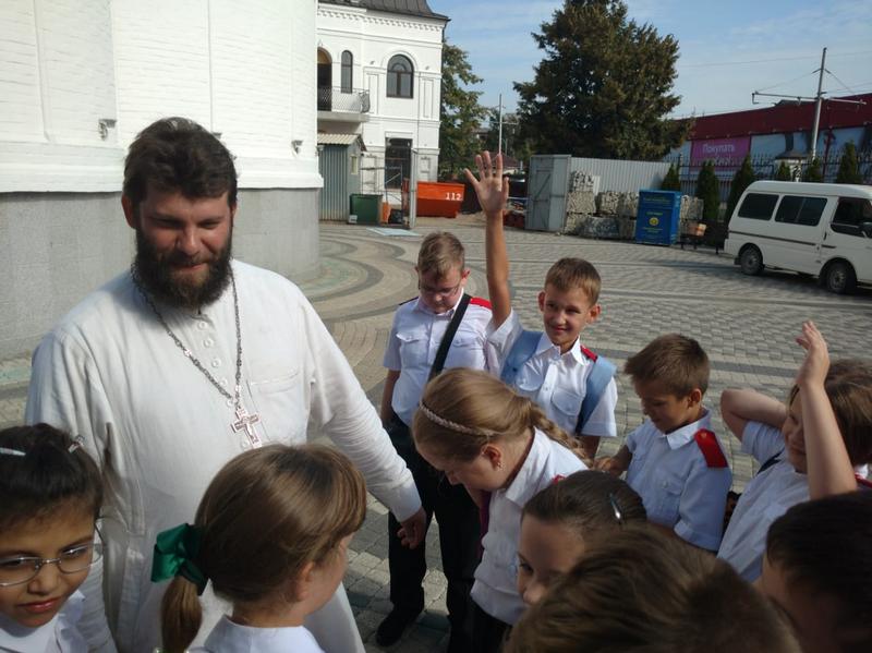 Окропив казачат святой водой, протоиерей Иоанн Воронов совершил молитву на начало учебного года, а так же пожелал ребятам здоровья, удачи и хороших оценок в предстоящем учебном году.