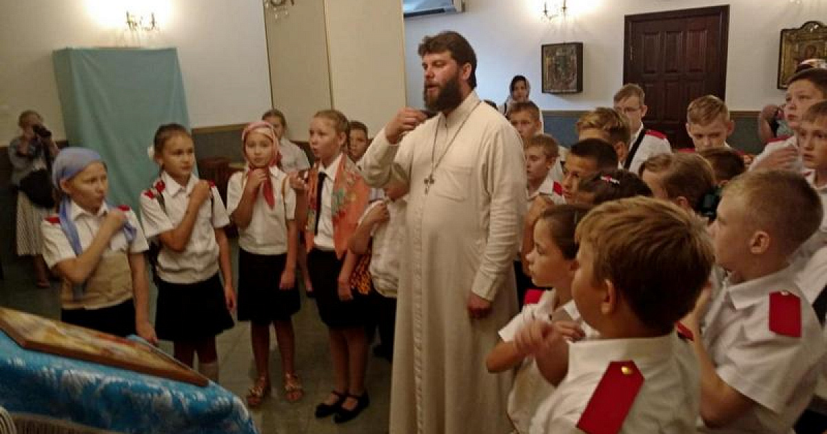 Перед началом учебного года учащиеся гимназии № 3 города Краснодара посетили Свято — Сергиевский храм. С большим интересом казачата прослушали историю иконы Божией Матери Порт Артурской. Ребят удивил тот факт, что эта икона единственное в иконографии изображение, на котором плат с Нерукотворным Ликом Спасителя держит сама Богородица и на иконе Дева Мария изображена без младенца Иисуса.