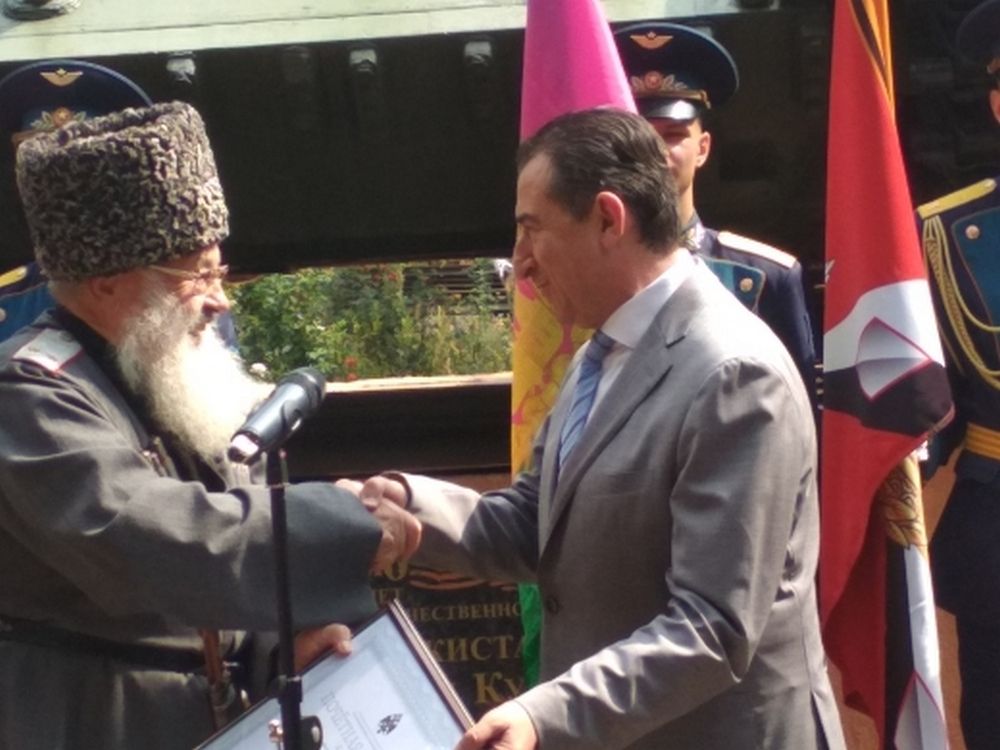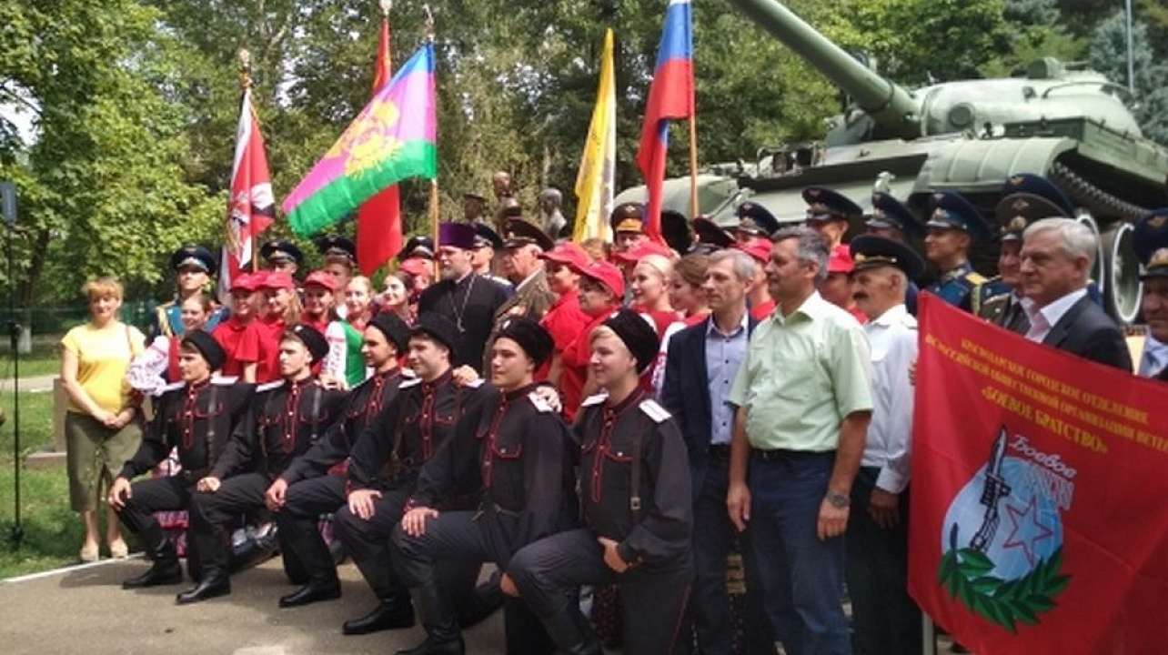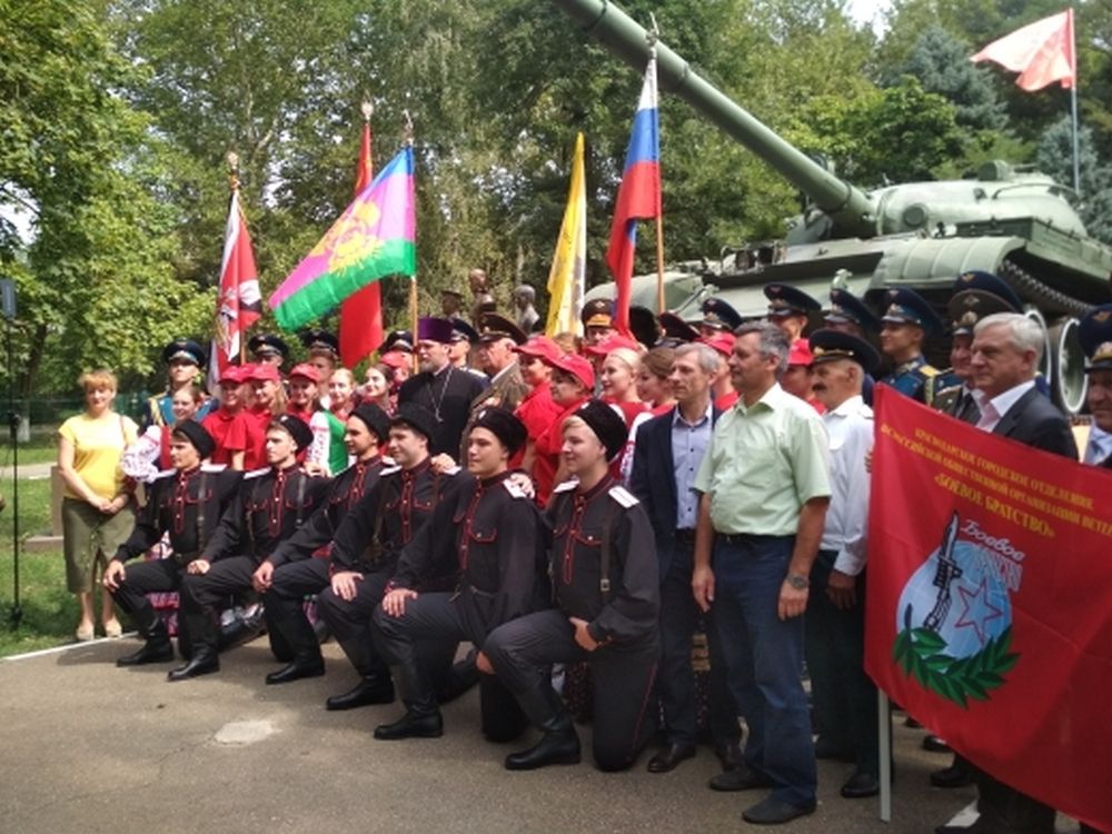 На торжественном мероприятии присутствовали почетные гости: казачий генерал Влади́мир Проко́фьевич Гро́мов, войсковой атаман Кубанского казачьего войска с 1990 по 2008 год, герой России Виктор Сергеевич Маркелов, и генерал-лейтенант Алекса́ндр Васи́льевич Нау́мов участник первой чеченской войны, также в мероприятии приняли участие представители военно-исторических клубов, почетные караулы МБОУ СОШ №68 имени героев-танкистов и «Краснодарского высшего военного авиационного училища летчиков имени Героя Советского Союза А.К.Серова», казаки ХКО «Колосистый».
