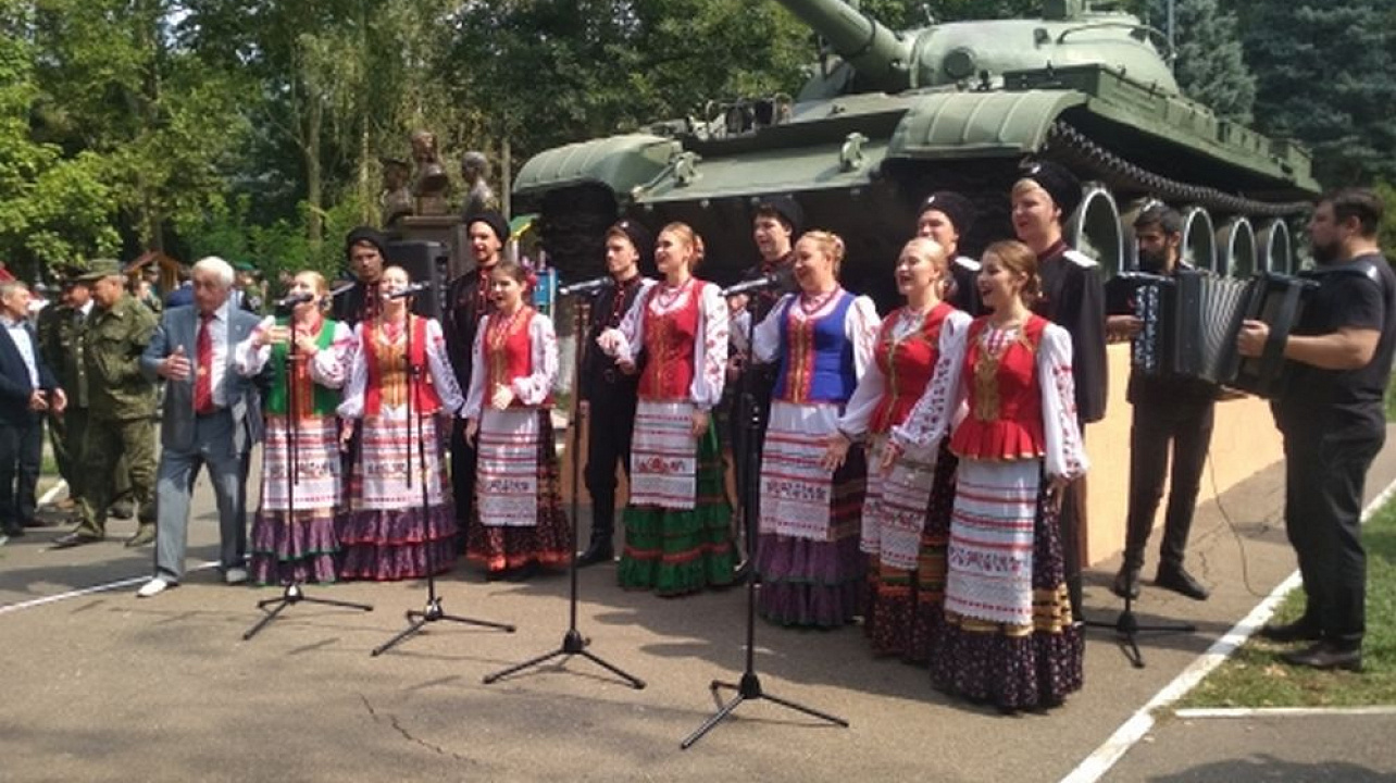Перед собравшимися гостями выступили народные творческие коллективы, исполнив казачьи и военные песни, и конечно же легендарную «Катюшу».