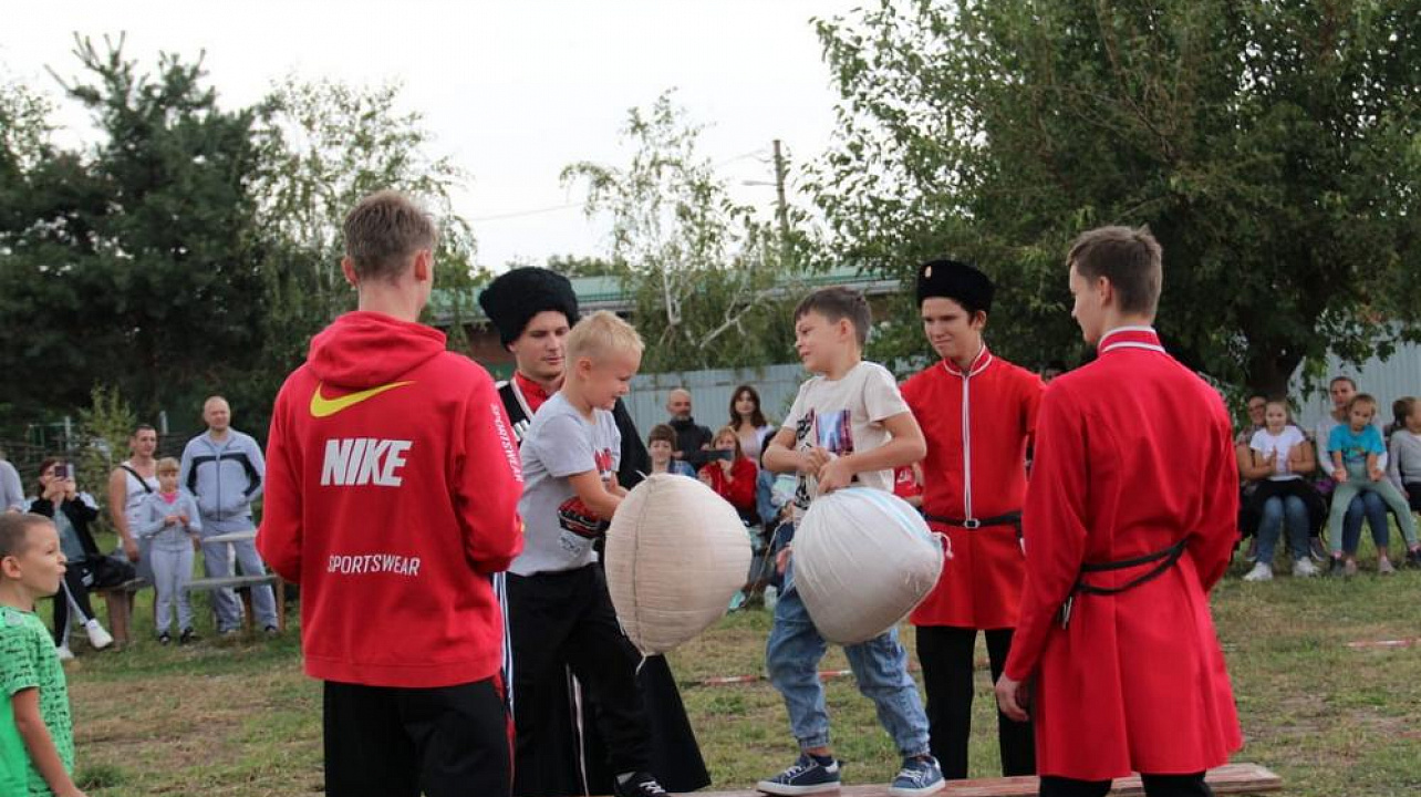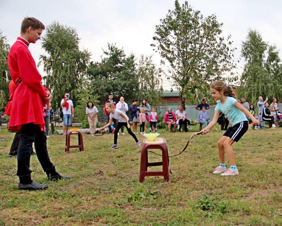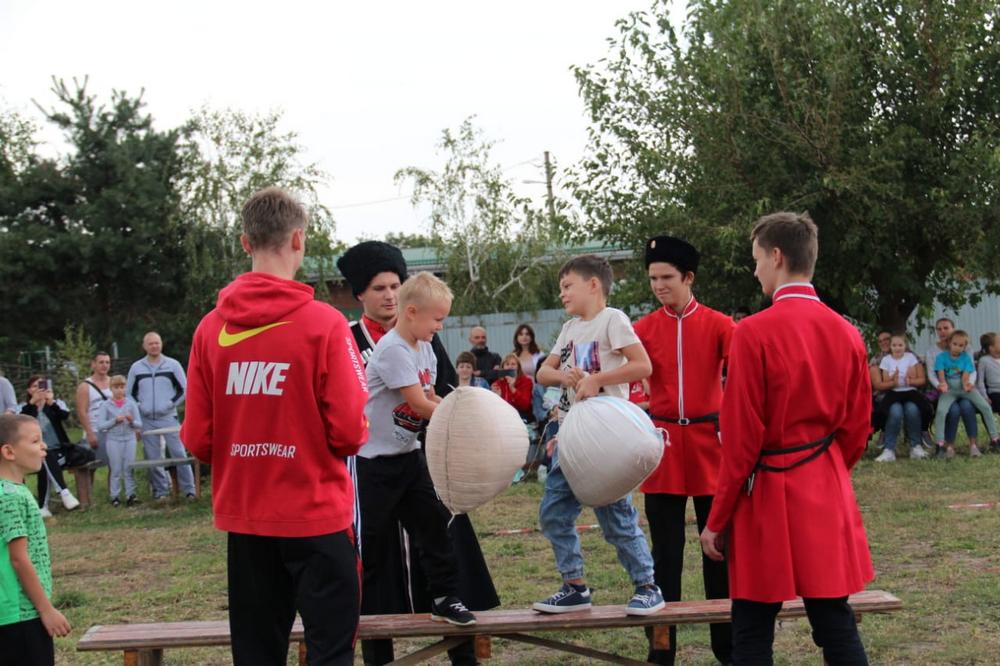 Мальчишки и девчонки приняли участие в казачьих играх и посоревновались в эстафетах, перетягивании каната и боях подушками.