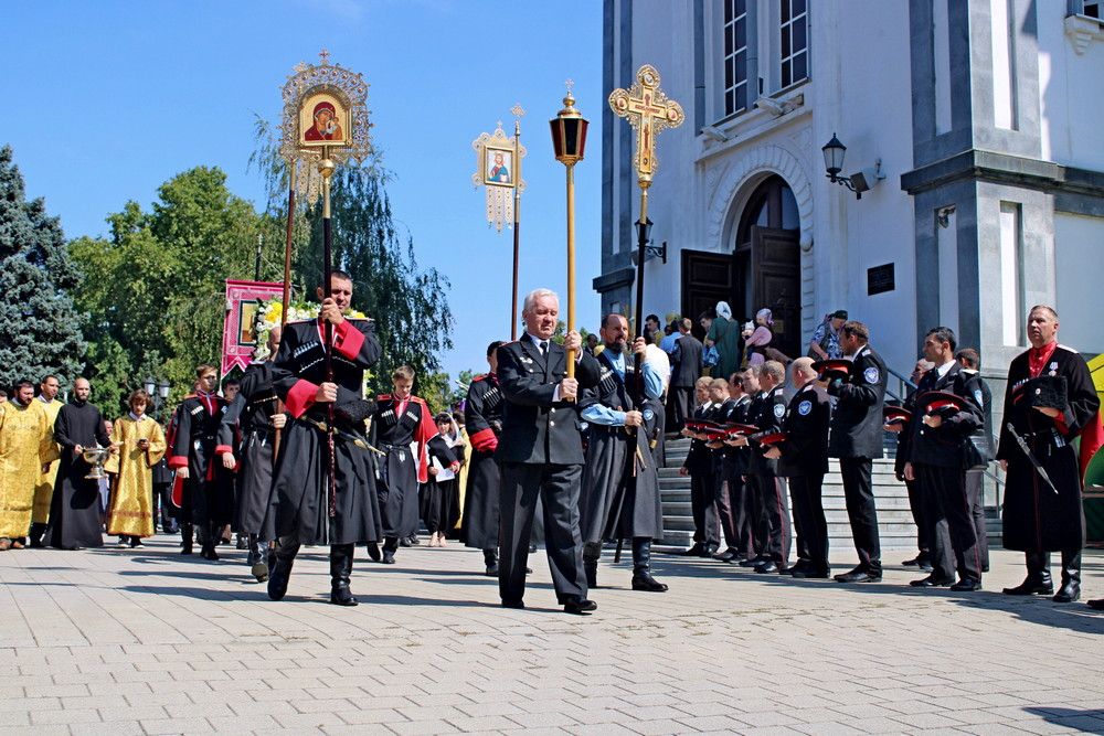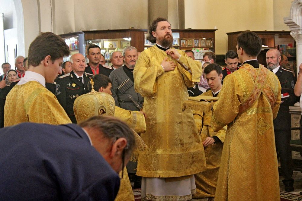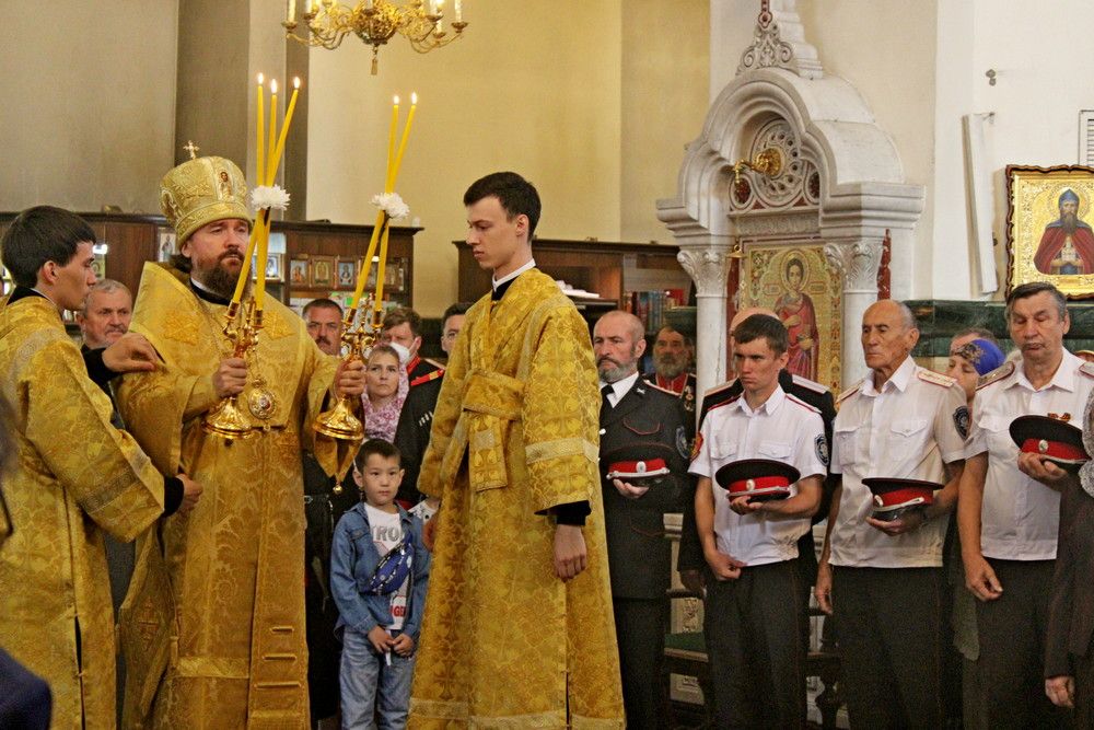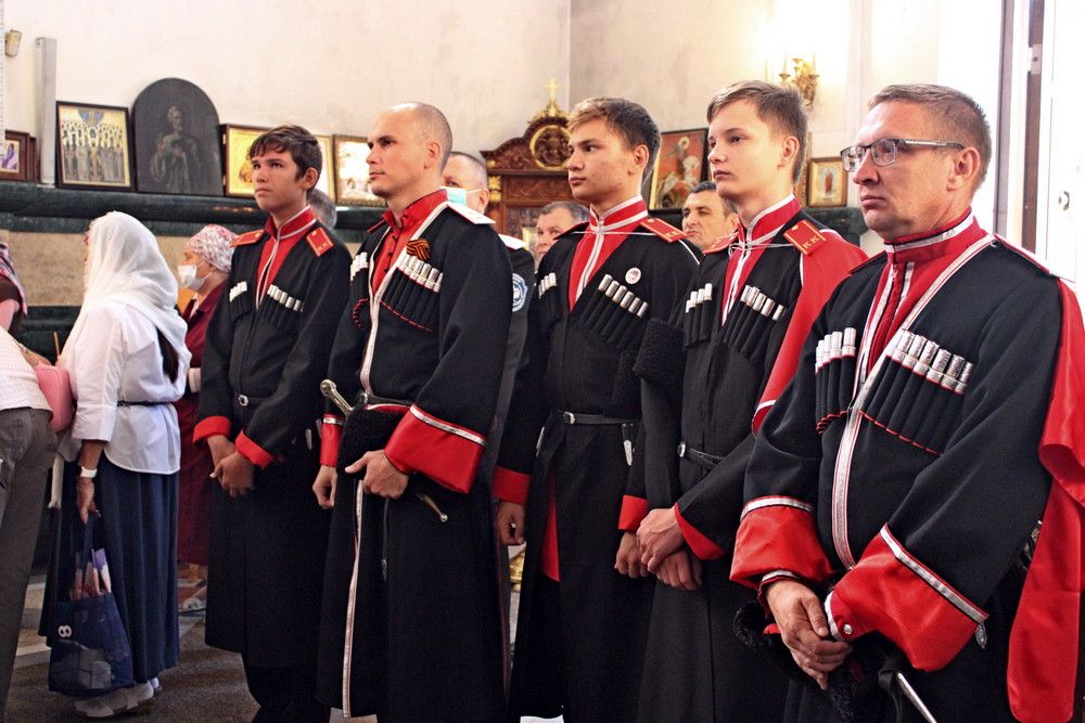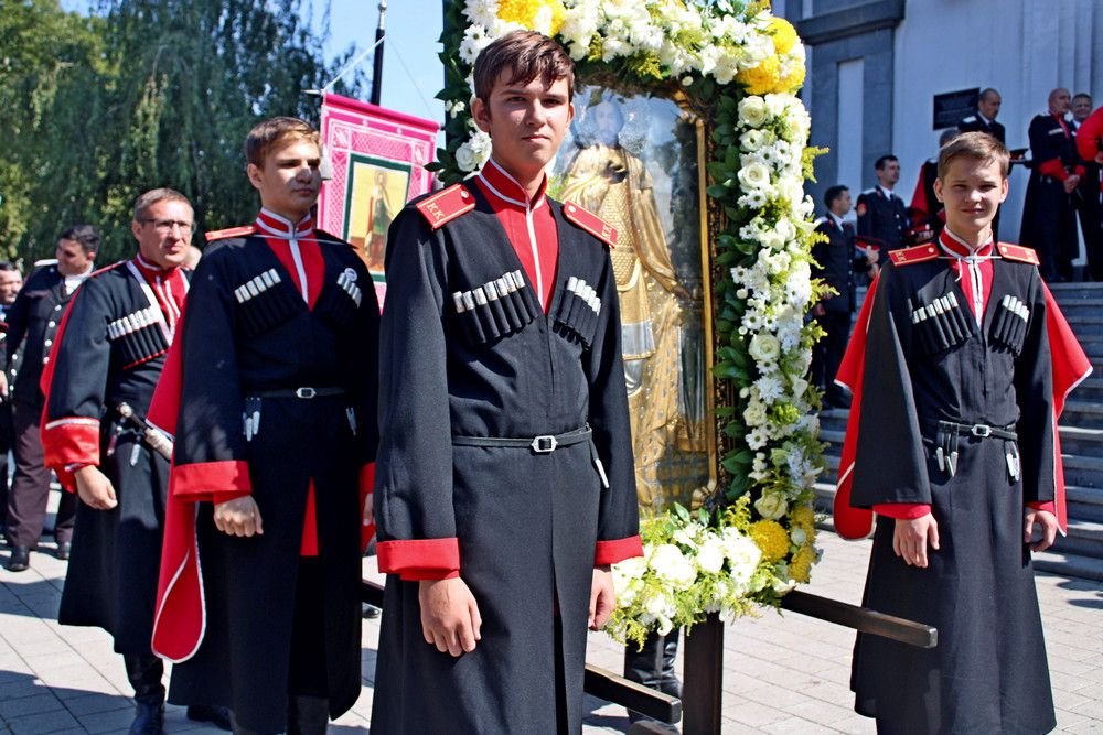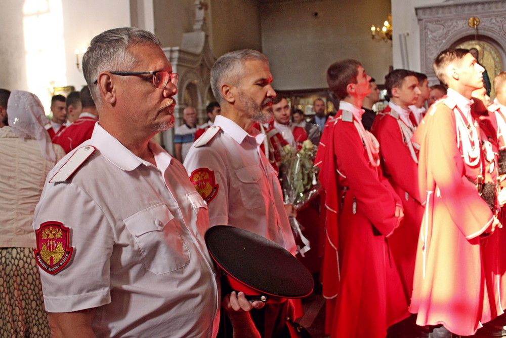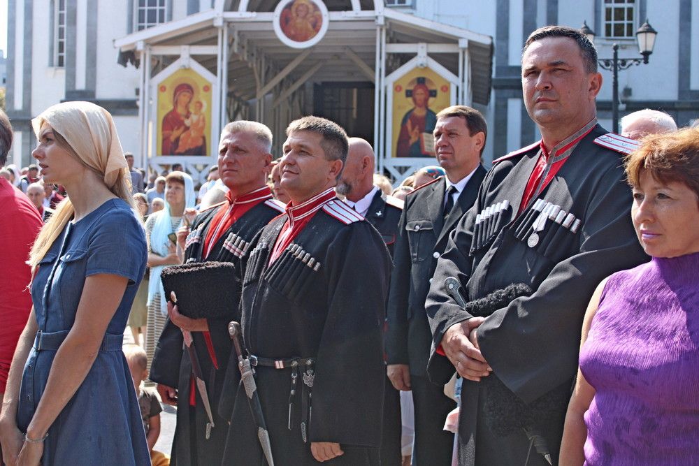 Торжественное богослужение традиционно прошло в Войсковом соборе. Литургию провел митрополит Екатеринодарский и Кубанский Григорий. В торжественной службе вместе с прихожанами приняли участие казаки Екатеринодарского районного казачьего общества во главе с Атаманом Всероссийского казачьего общества казачьим генералом Николаем Долудой; атаманом Кубанского казачьего войска казачьим полковником Александром Власовым, атаманом Екатеринодарского РКО Василием Павликом; атаманами других районных обществ Екатеринодарского отдела; атаманами первичных казачьих обществ и командирами казачьих дружин краевой столицы.