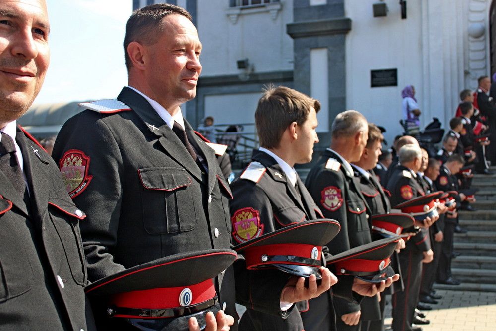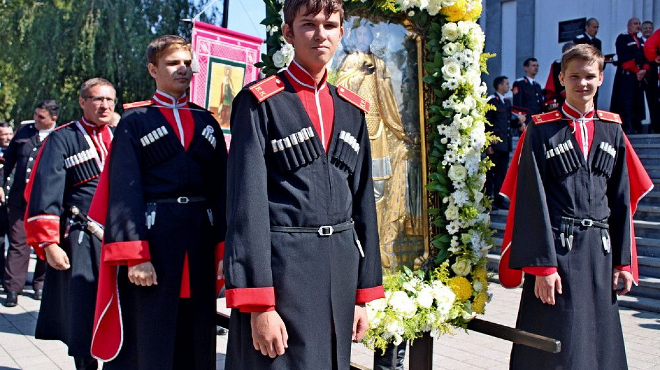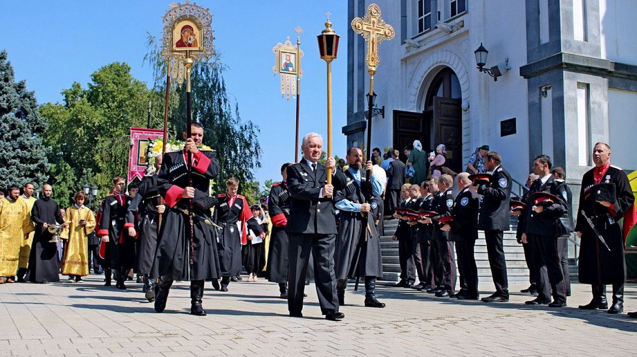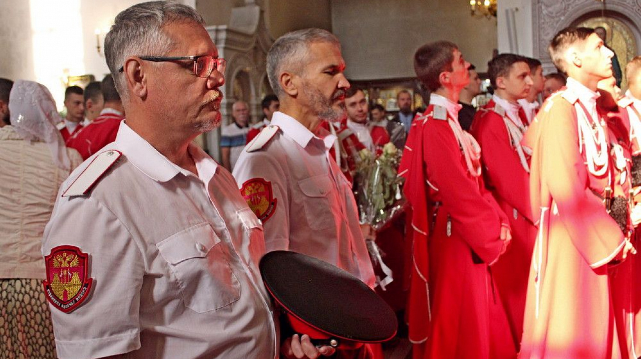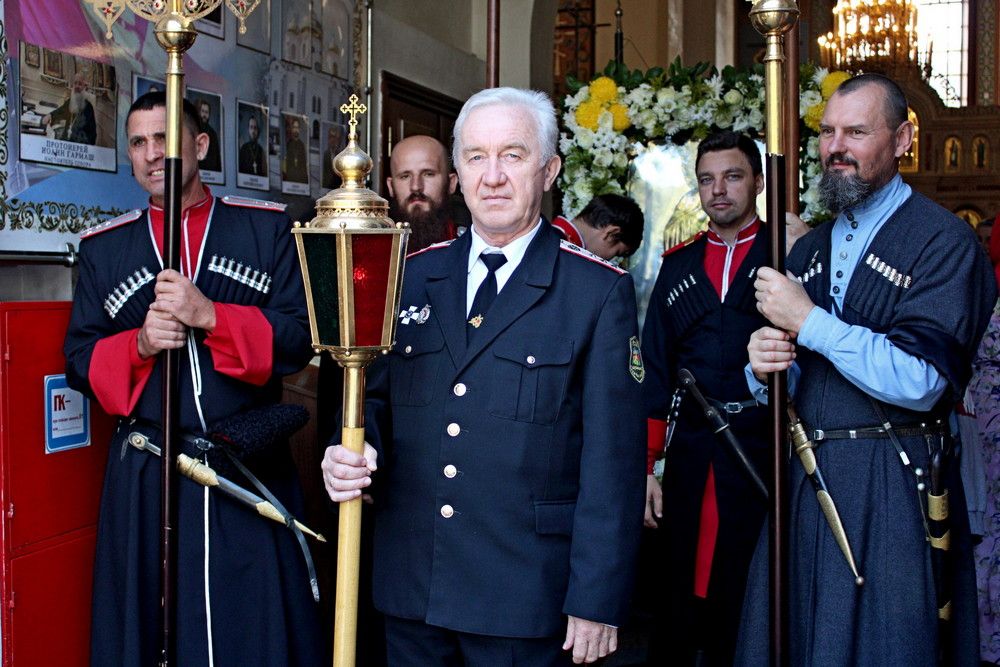 Торжественное богослужение традиционно прошло в Войсковом соборе. Литургию провел митрополит Екатеринодарский и Кубанский Григорий. В торжественной службе вместе с прихожанами приняли участие казаки Екатеринодарского районного казачьего общества во главе с Атаманом Всероссийского казачьего общества казачьим генералом Николаем Долудой; атаманом Кубанского казачьего войска казачьим полковником Александром Власовым, атаманом Екатеринодарского РКО Василием Павликом; атаманами других районных обществ Екатеринодарского отдела; атаманами первичных казачьих обществ и командирами казачьих дружин краевой столицы.