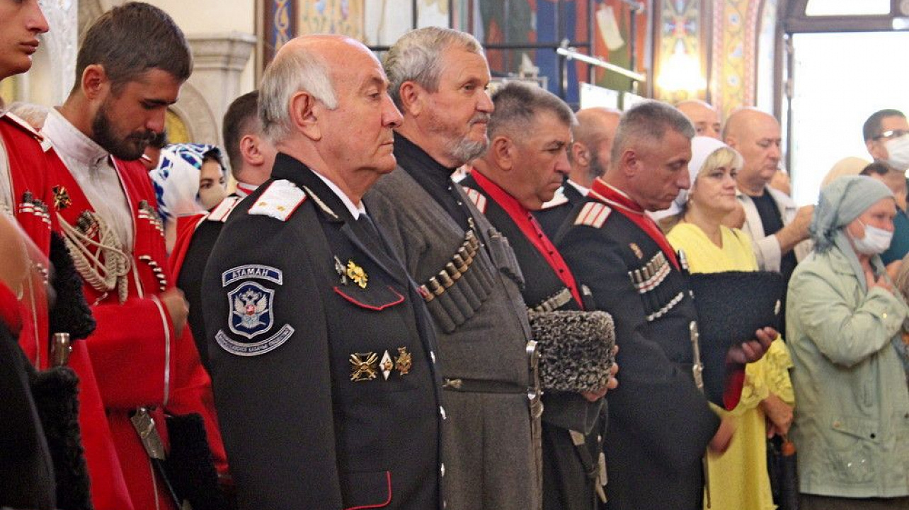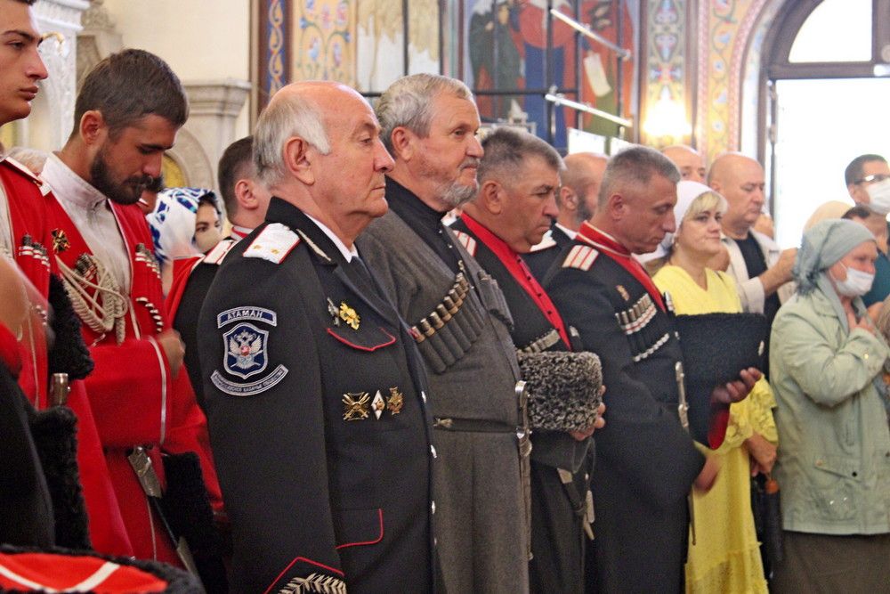 Богослужебные песнопения исполнил Кубанский казачий хор. После божественной литургии казаки вместе с членами семей и прихожанами совершили крестный ход вокруг храма.