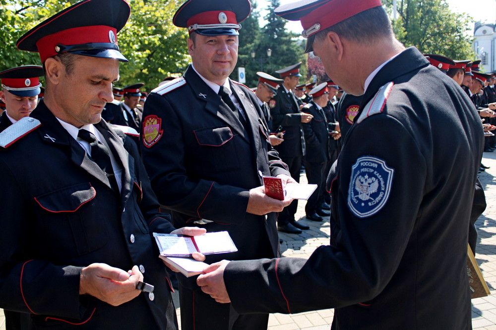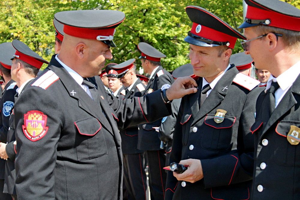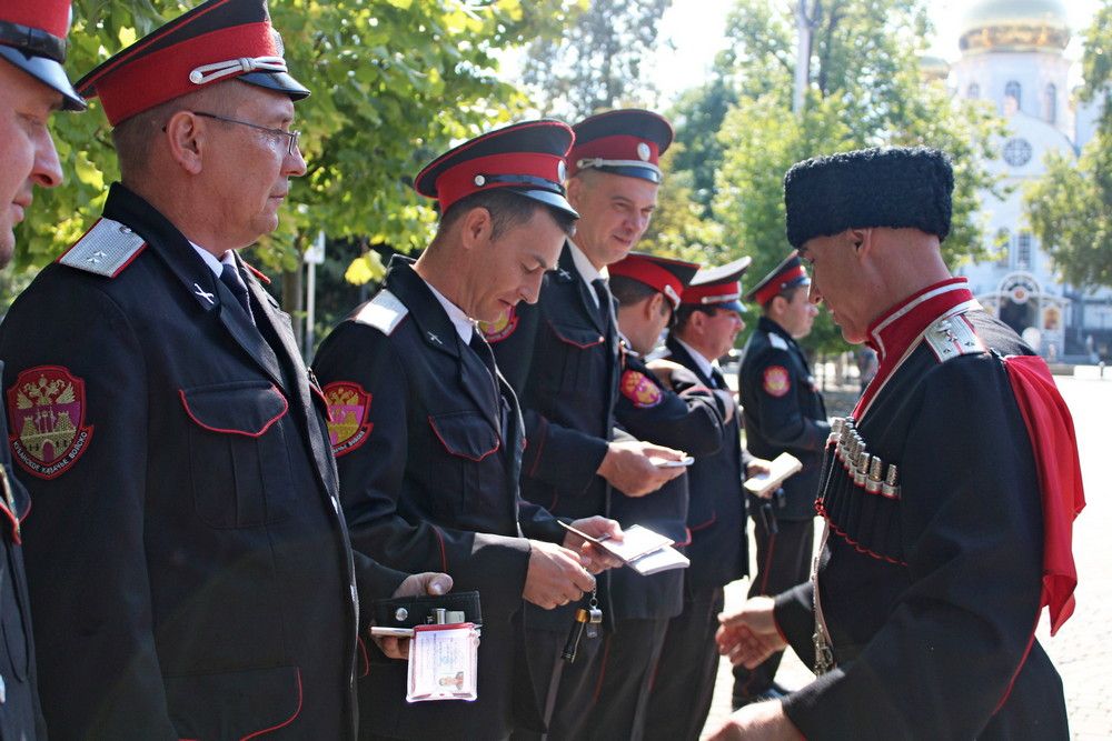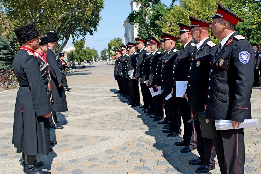 Заместитель атамана Кубанского казачьего войска подъесаул Сергей Захаров совместно с атаманом Екатеринодарского районного казачьего общества войсковым старшиной Василием Павлик, а также совместно с правлением Екатеринодарского РКО и командирами дружин проверили внешний вид дружинников, а также наличие удостоверений, фонариков, личных книжек, знаков отличий и функциональные обязанности.
