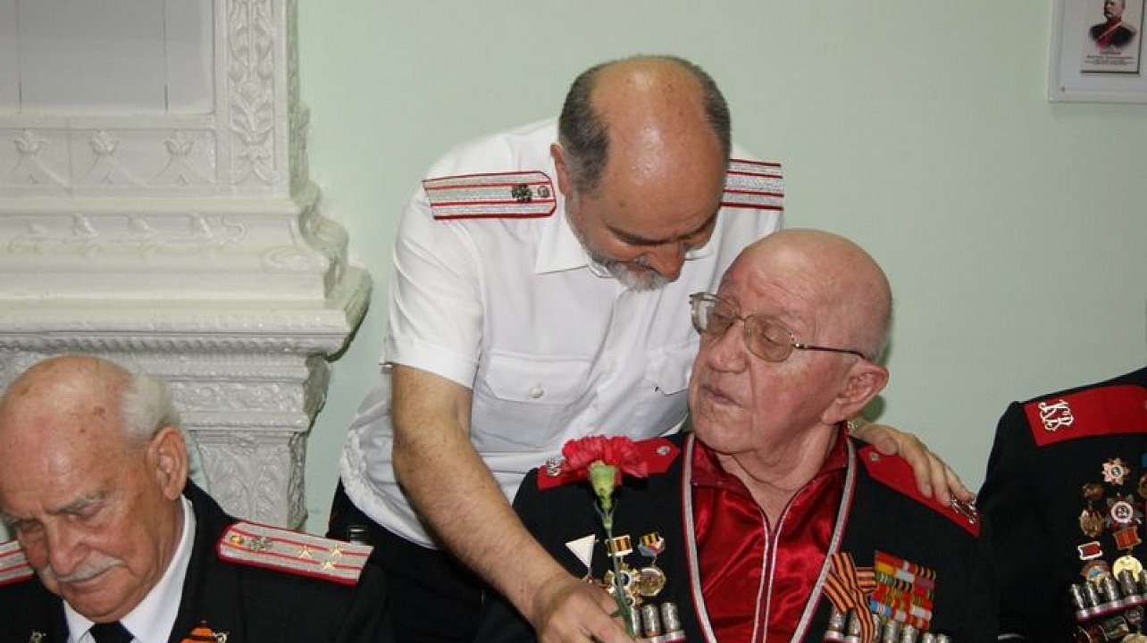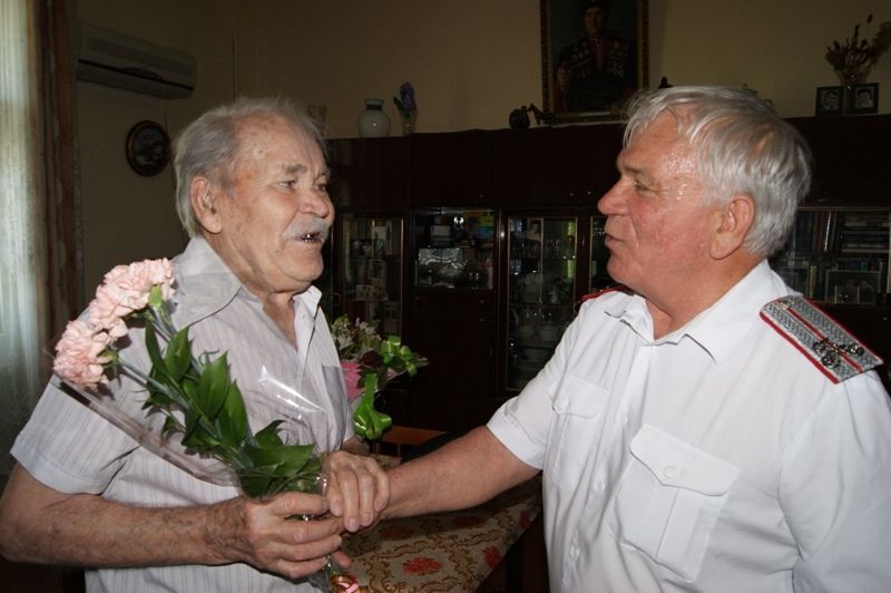 Атаман Екатеринодарского районного казачьего общества, казачий полковник Александр Пащенко сказал ветеранам тёплые слова, вручив цветы и подарки.