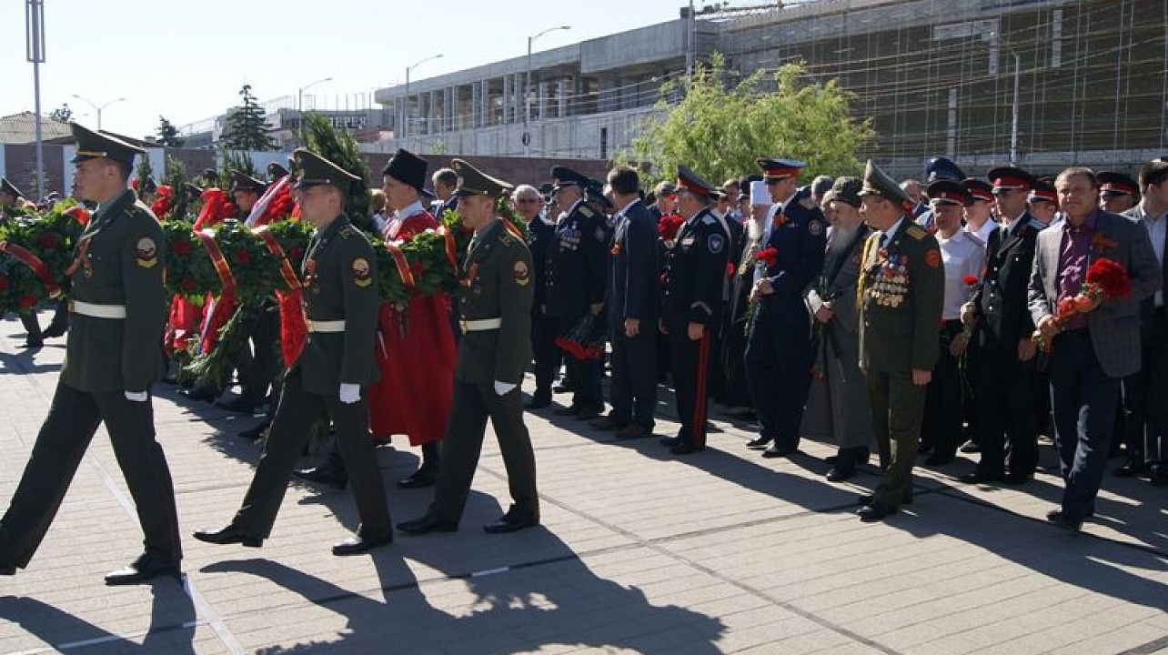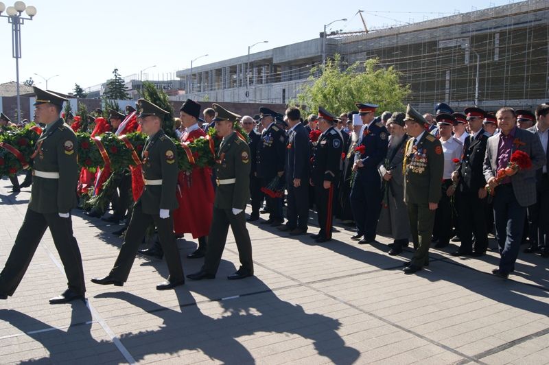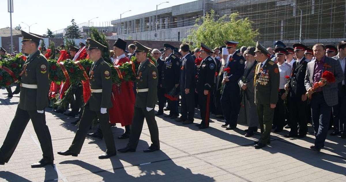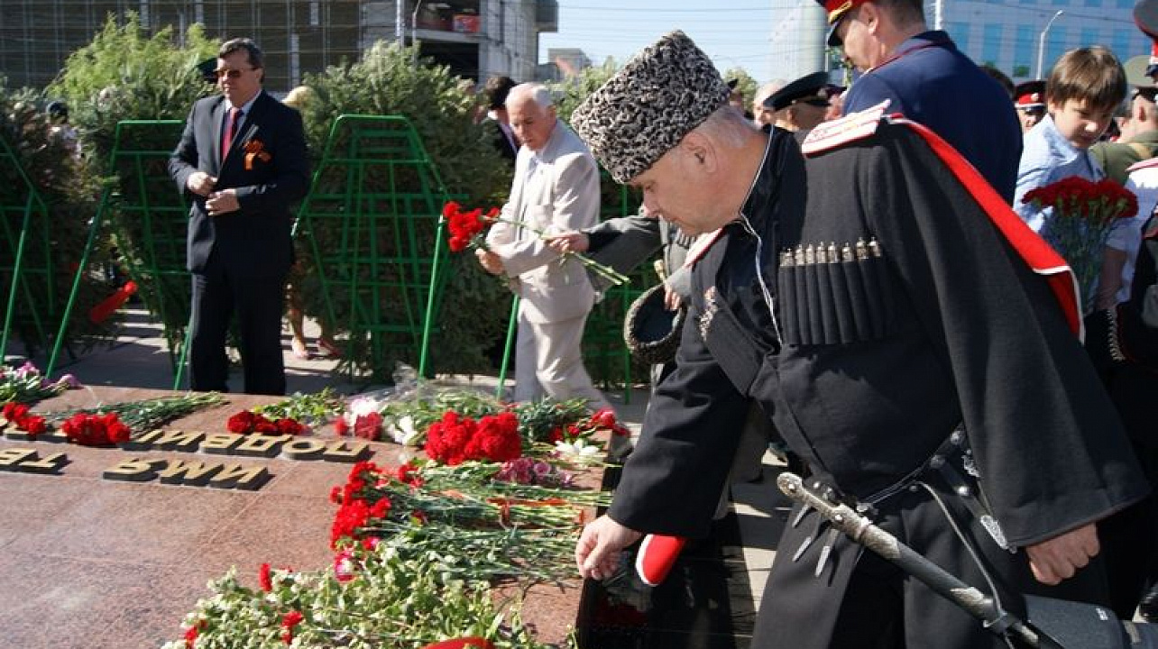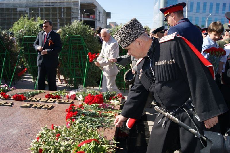 В день Великой Победы 9 мая казаки Екатеринодарского районного казачьего общества приняли участие в возложении цветов к Вечному огню, почтив память героев, после чего приняли участие в торжественном параде.