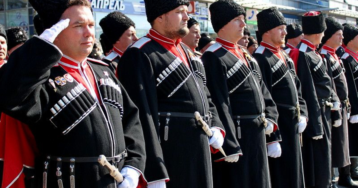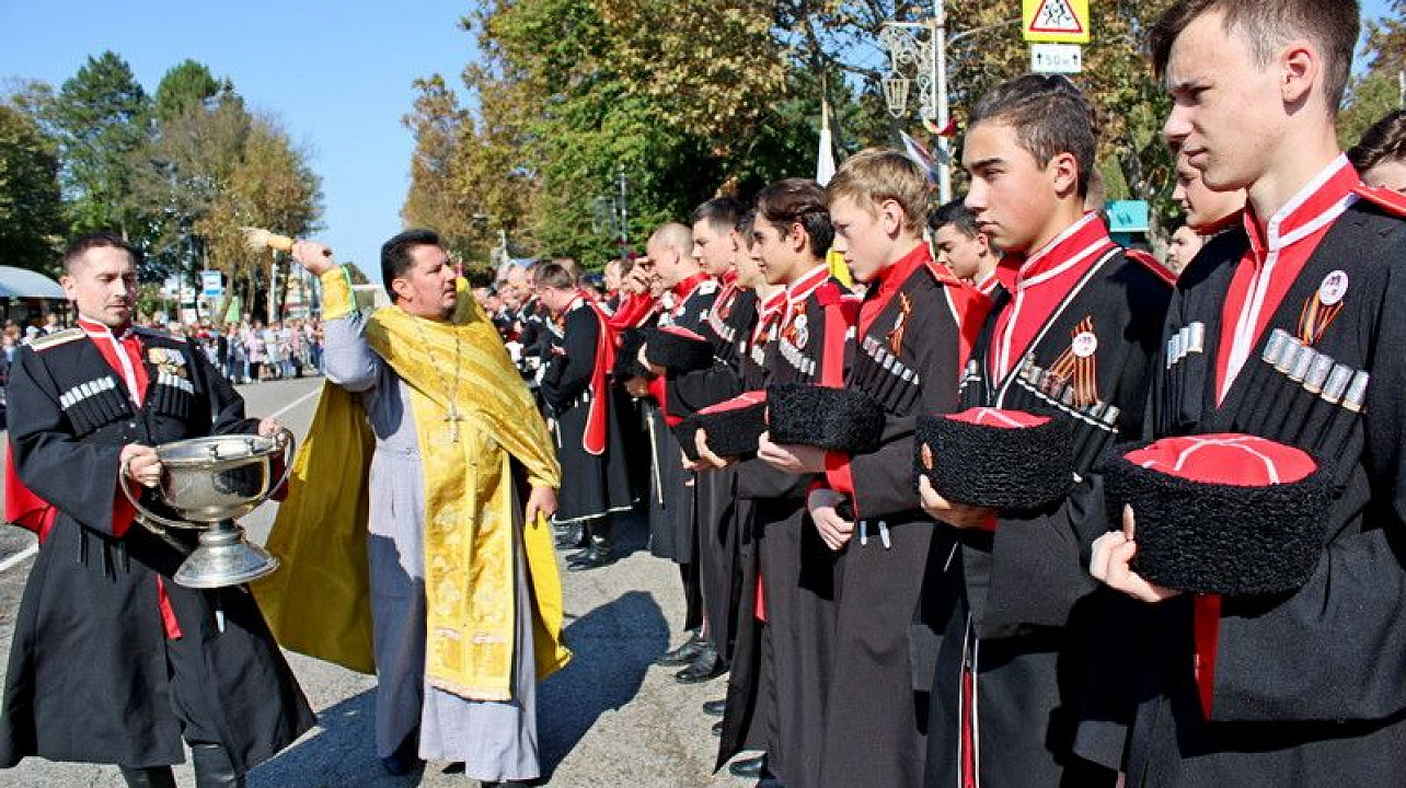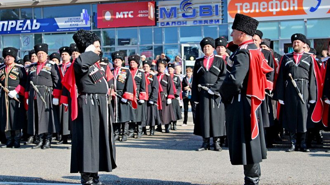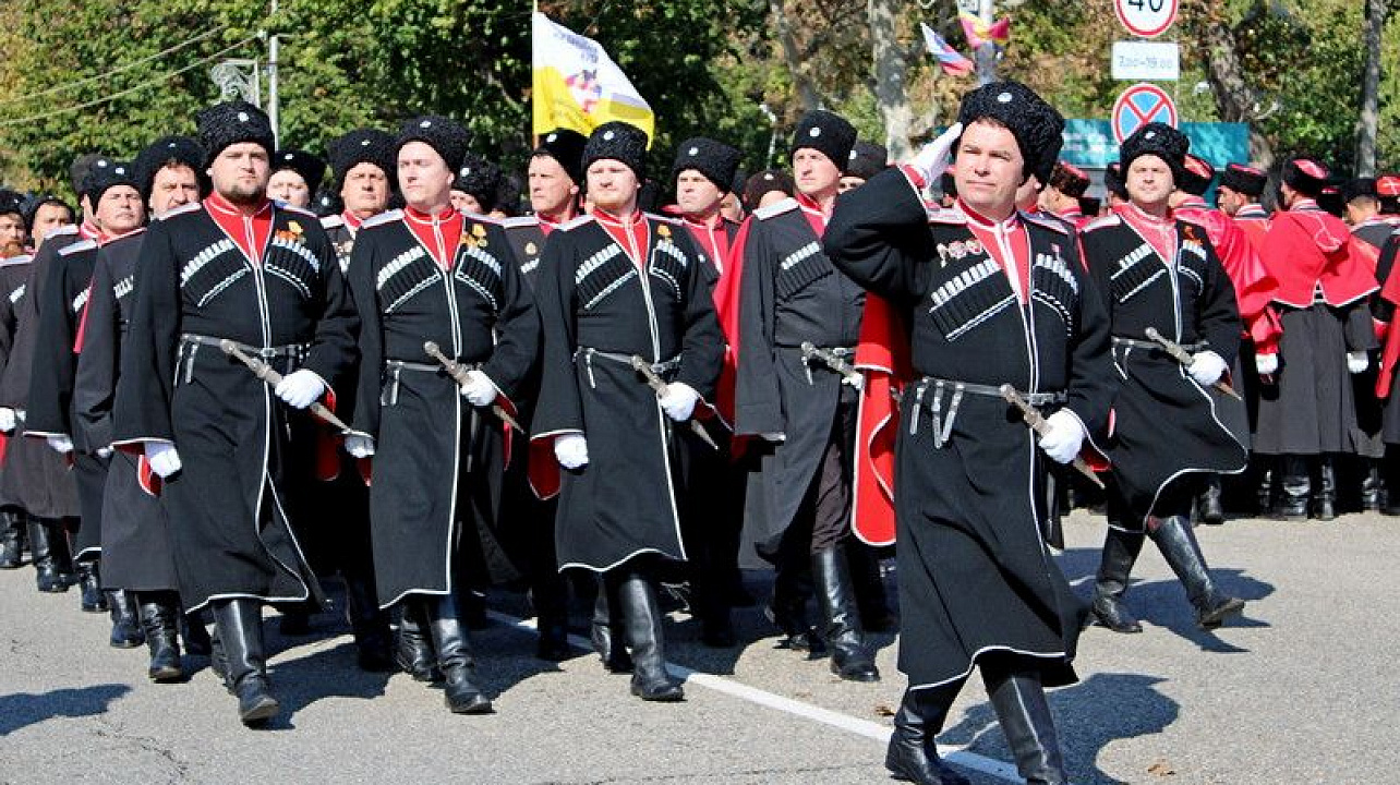 В 11:00 начался парад казачьих сотен Екатеринодарского отдела Кубанского казачьего войска. Руководил им атаман Екатеринодарского отдела Виктор Светличный. В торжественном мероприятии также принял участие первый заместитель атамана Кубанского казачьего войска, казачий полковник Николай Перваков.
