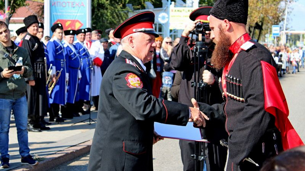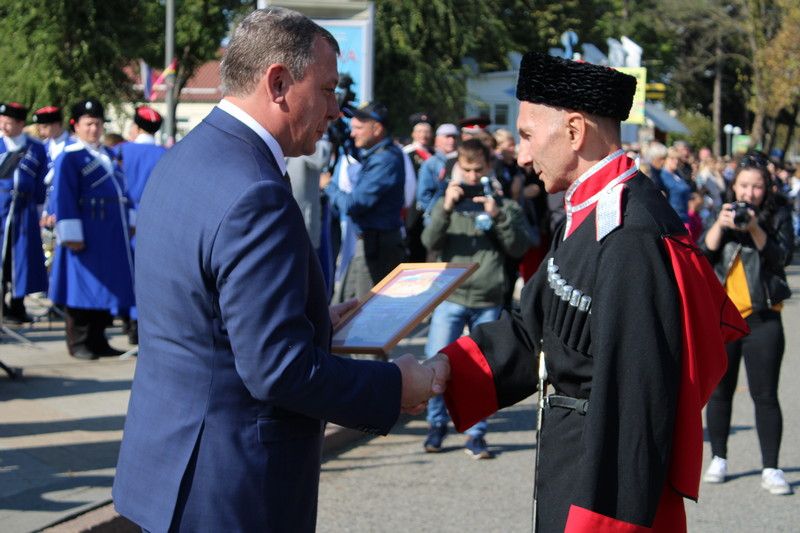 Во время официальной части праздника Виталий Косенко наградил казаков-краснодарцев за вклад в патриотическое воспитание юных жителей города. Всего на мероприятии отметили атаманов 4 хуторских казачьих обществ и 7 казаков Екатеринодарского районного казачьего общества.