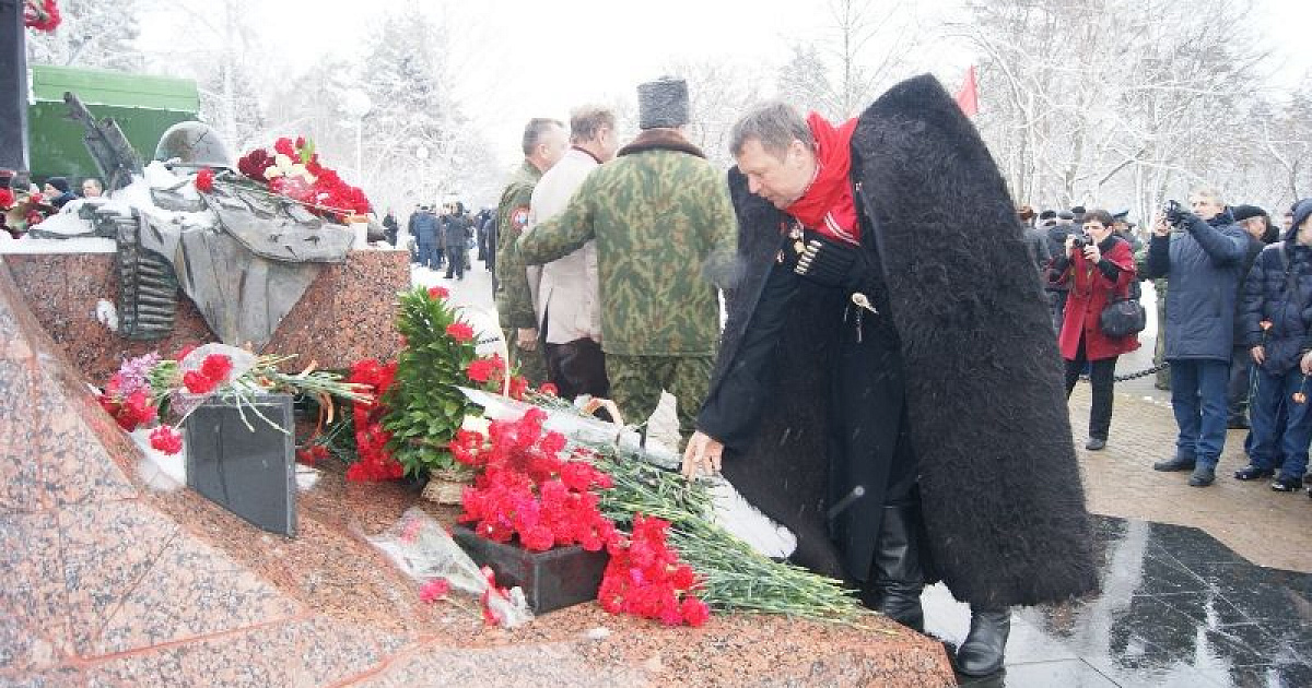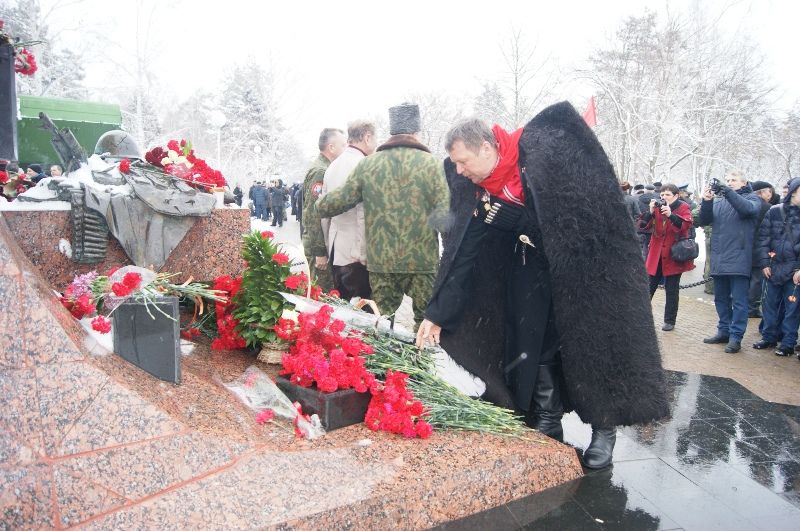 Под гимны России, Кубани и Краснодара к памятнику «Сынам Кубани, павшим в Афганистане» возложили венки, гирлянды и цветы, прозвучали залпы торжественного салюта.