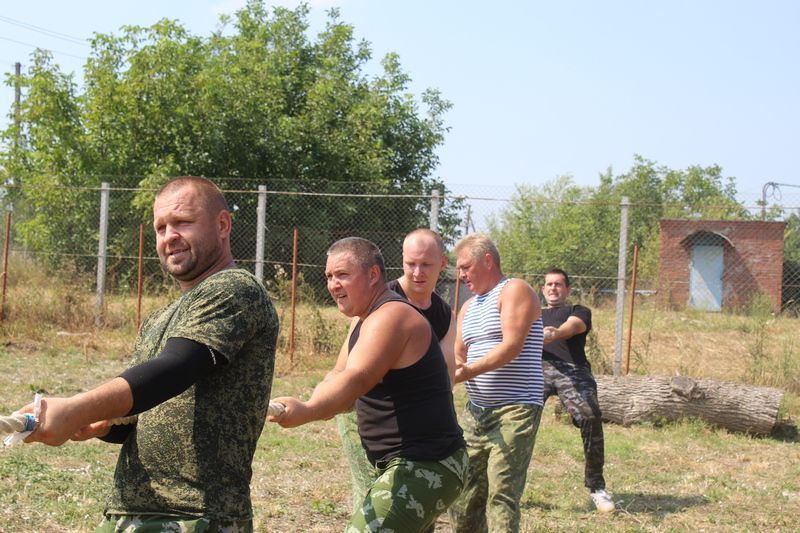 В соревнованиях участвовали казаки местных хуторских казачьих обществ в видах: метание ножей; толчок 2-х гирь (24 кг.); бои мешками; метание гири (16 кг.); перетягивание каната.