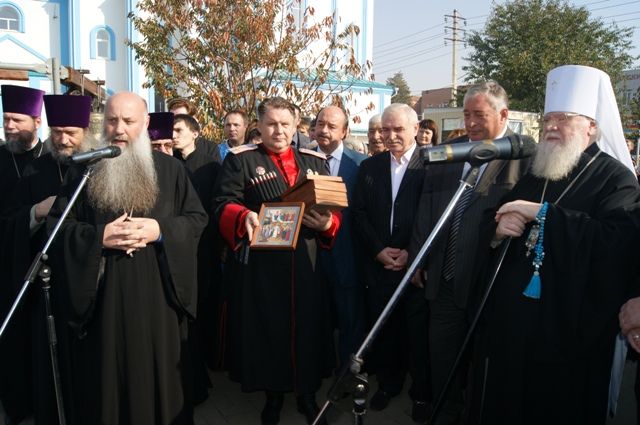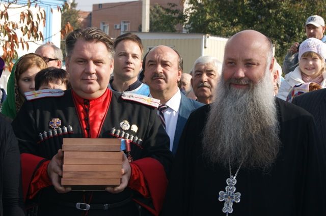 После праздничного Богослужения с поздравлением к казакам духовенству и прихожанам обратился заместитель главы города Краснодара Сергей Васин, поздравив с праздником.