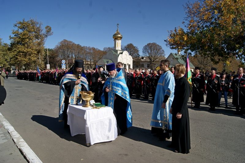 Мероприятия традиционно начались с торжественного внесения знамени Екатеринодарского отдела и гимнов России и Кубани. После этого прозвучала команда «Шапки долой!» для молитвы. Молитву проводил Иеромонах Спиридон (Федотов) — духовник Екатеринодарского отдела и настоятель