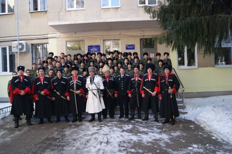 Казаки хуторского казачьего общества «Кубанский казачий кордон» в рамках месячника оборонно-массовой и военно-патриотической работы 6 февраля провели встречу с кадетами Кубанского казачьего кадетского корпуса имени атамана М.П. Бабыча.