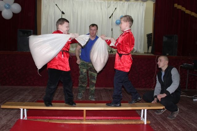 В перерывах между выступлениями ребята-казачки разминались в состязаниях по прыжкам в мешках и боях на подушках.