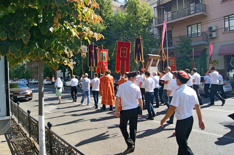 В связи с этим в Краснодаре во вторник состоялся крестный ход, в котором прошли около 80 казаков Екатеринодарского РКО.