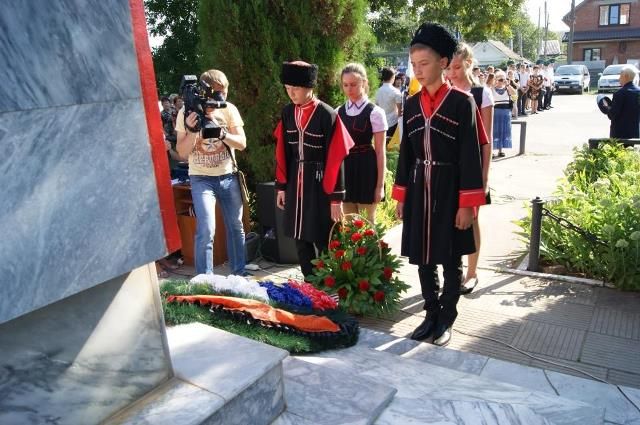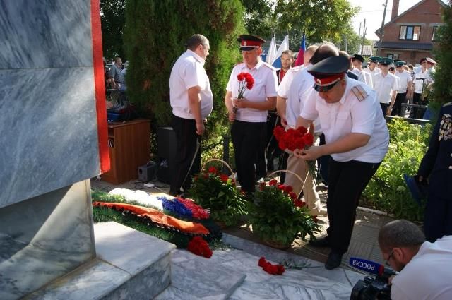 У памятника Освободителям Краснодара собрались казаки, ветераны представители администрации, учащиеся классов казачьей направленности, военнослужащие, а так же простые жители и гости города.