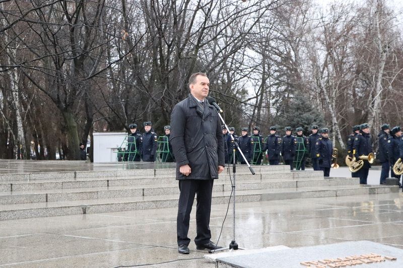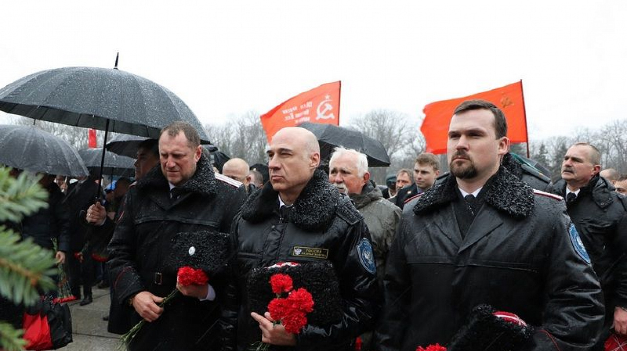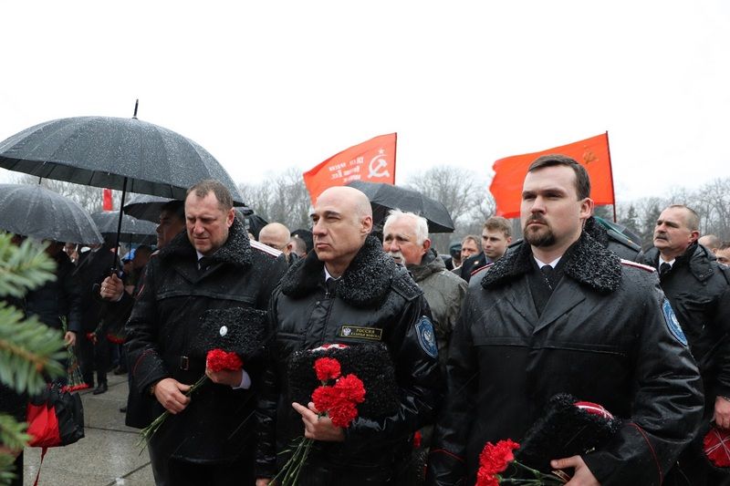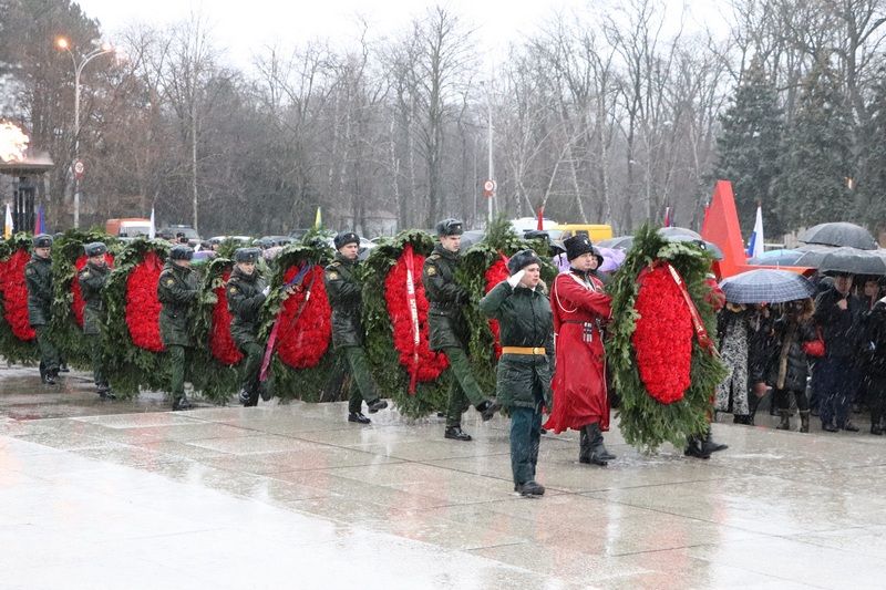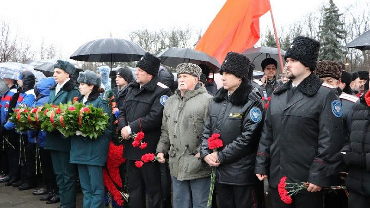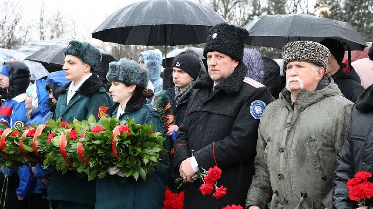 Несмотря на непогоду отдать дань памяти освободителям Краснодара от немецко-фашистских захватчиков к мемориалу пришли более тысячи человек. У многих в этой братской могиле остались лежать те, кто защищал город от врага.