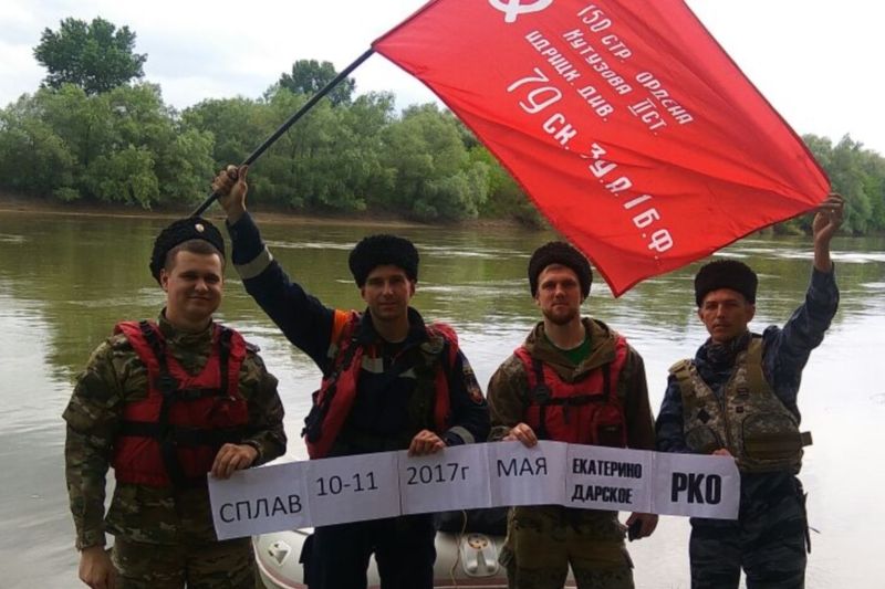 18 мая 2017С 10 по 11 мая казаки Екатеринодарского районного казачьего общества: Михаил Кульбашный, Тимофей Шевченко, Григорий Новиков и Александр Галкин организовали сплав по реке Кубань на моторной лодке, посвящённый