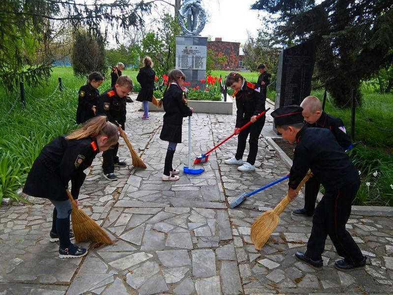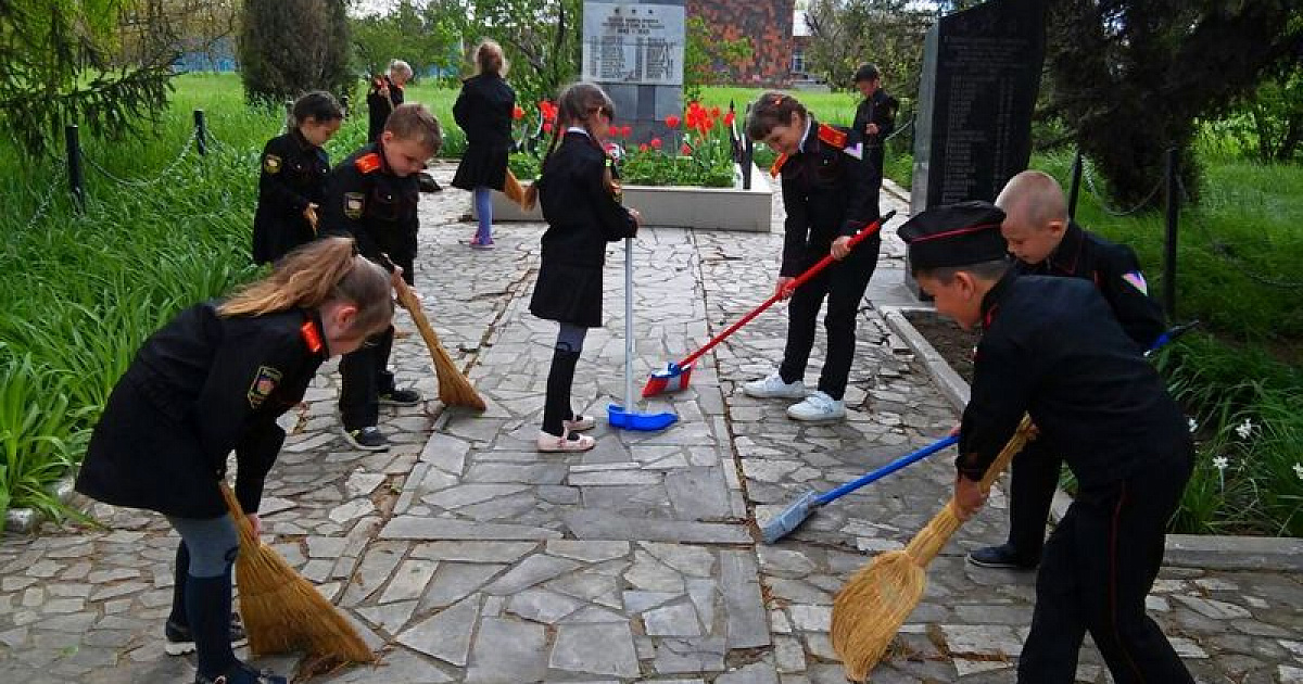8 июня в МБОУ ООШ № 79 учащиеся первого казачьего класса устроили трудовой десант. Ребята убирались на территории Братской могилы. Захоронение расположено на территории школы и за ним ребята ухаживают постоянно. Казачата отметили, что очень важно чтить память предков, которые отдали жизнь за мирное небо над головой. После уборки казачата посетили ветеранов труда.