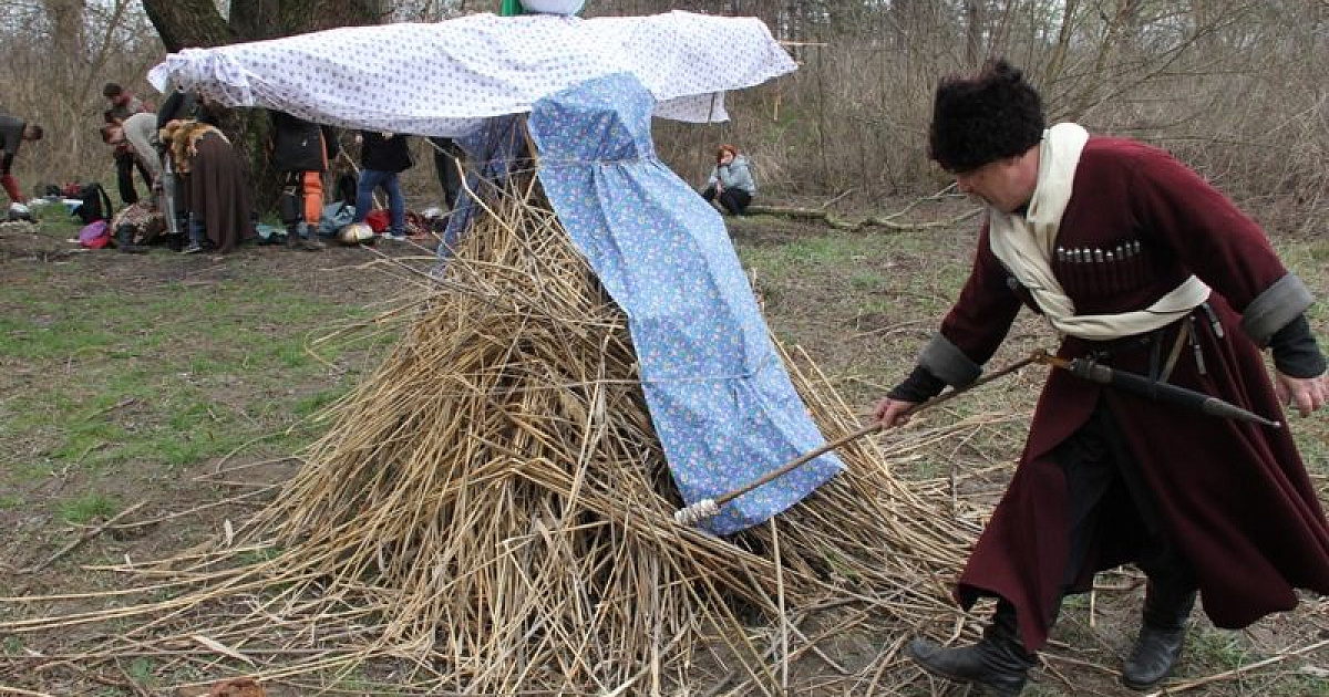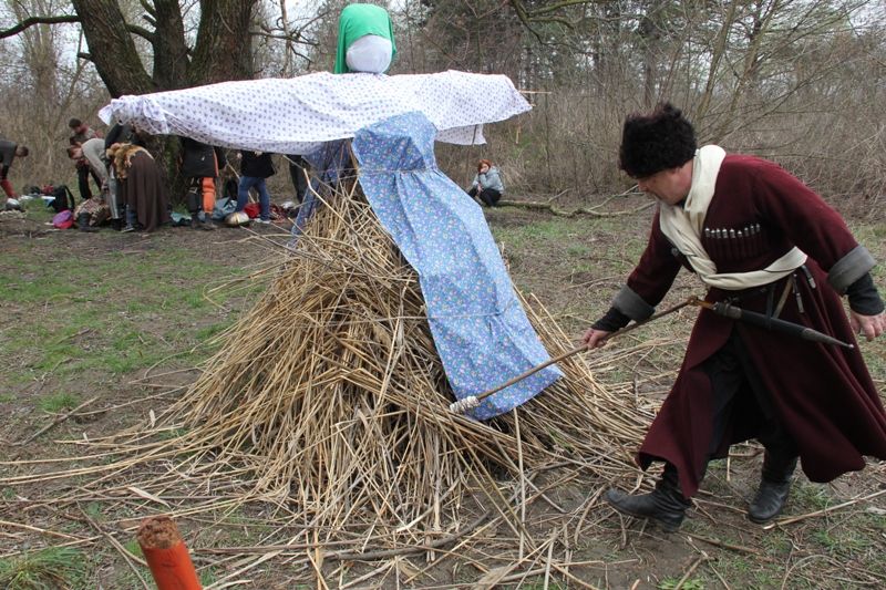Было принято сжигать чучело – как символ прощания с холодной зимой и призыва скорейшего начала теплой весны.
