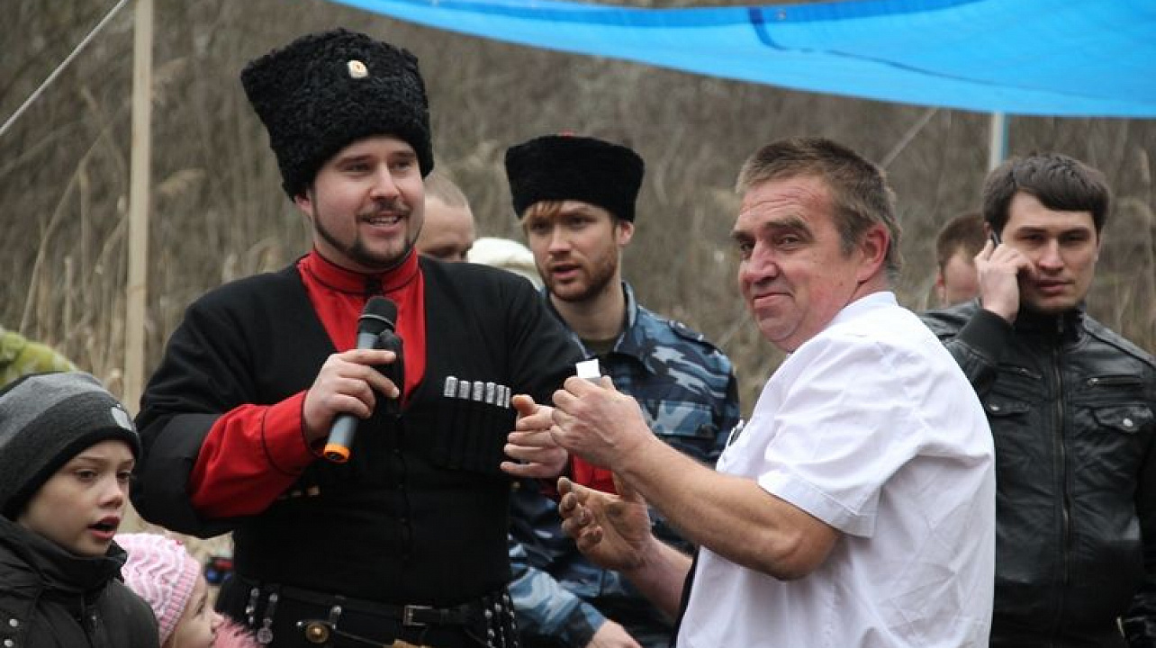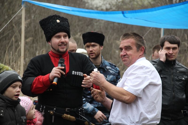 В честь последнего дня Масленицы хуторским казачьим обществом "Ореховатое" Екатеринодарского районного казачьего общества были организованы праздничные гуляния на полуострове за автовокзалом «Южный».