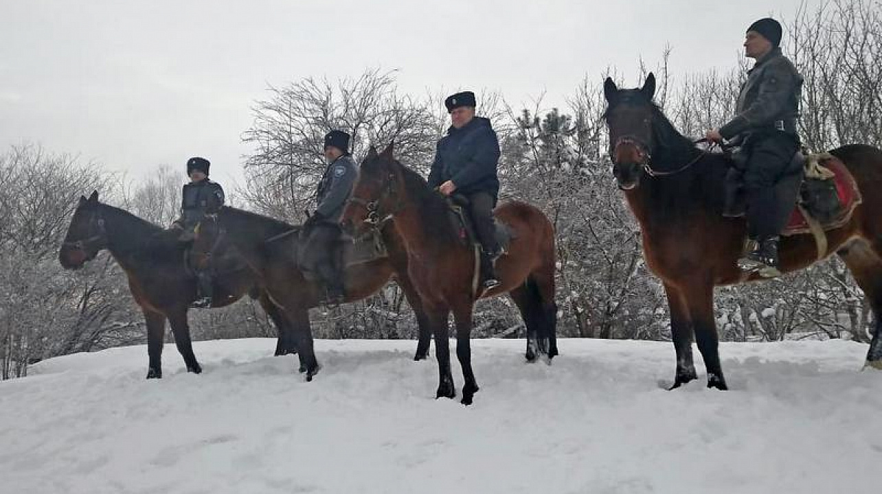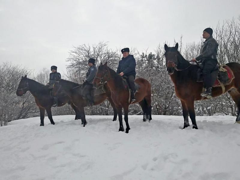 Конный дозор патрулировал территорию от мемориала памяти жертв Гражданской войны до Храма Рождества Христова.