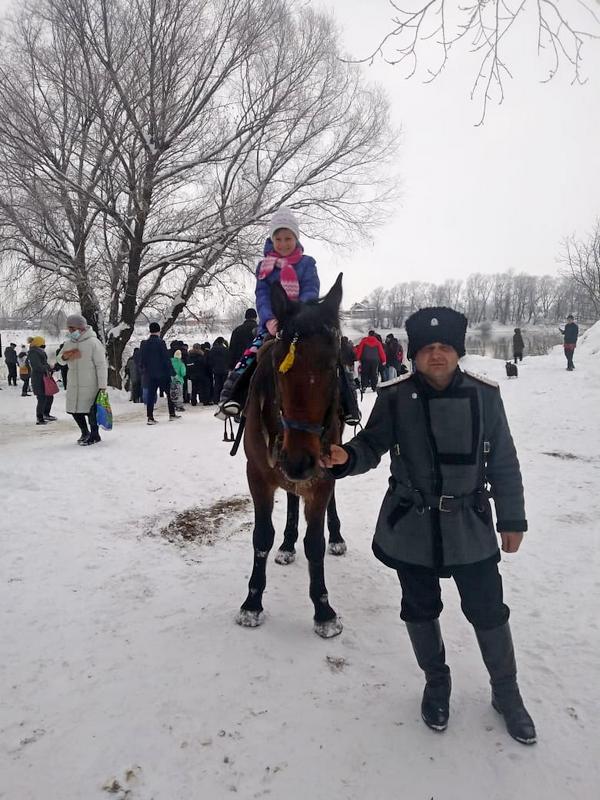 В заключении казаки покатали детей на лошадях, что вызвало бурю восторга у малышей.