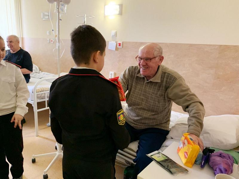 20 февраля на кануне Дня защитника Отечества в рамках года Памяти и Славы казачата из 3 казачьего «А» класса Школы №17 города Краснодара посетили ветеранов Великой Отечественной Войны, локальных войн и тружеников тыла в краевом клиническом госпитале им. профессора Красовитова.