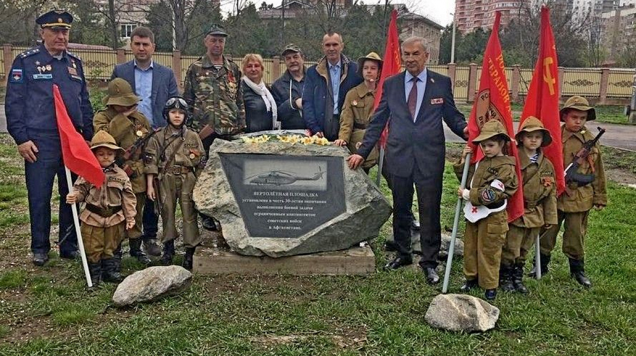 20 апреля 2021В Юбилейном микрорайоне города Краснодара 18.04.2021г. ветераны «Афганцы» при взаимодействии с управлением по делам казачества и военнослужащих администрации муниципального образования город Краснодар открыли памятный знак и детскую «Вертолётную площадку» в честь ветеранов локальных воин.