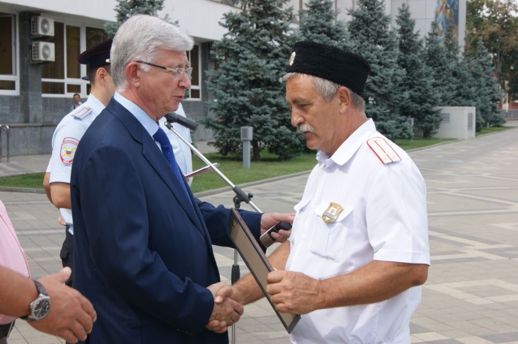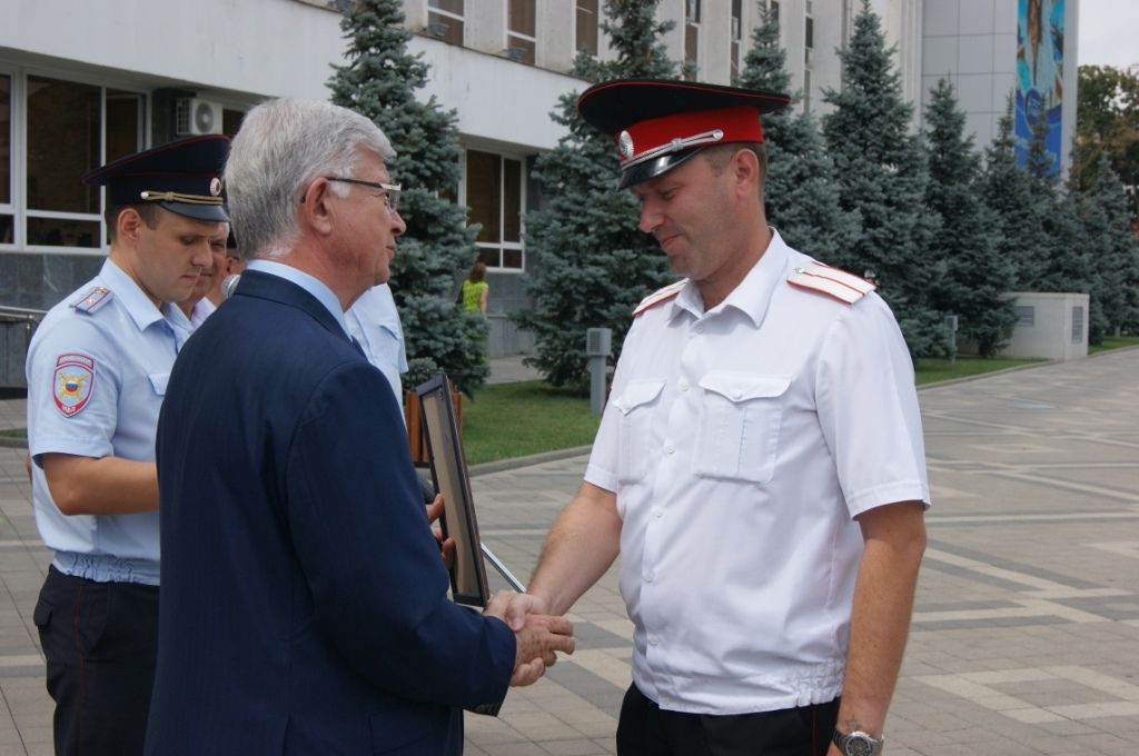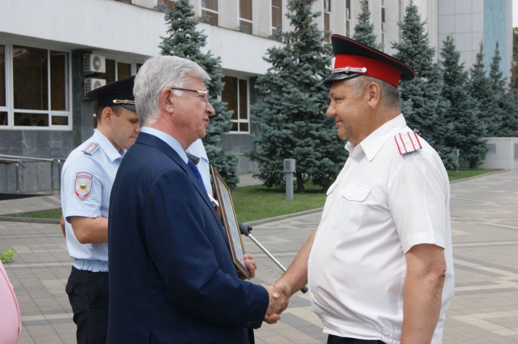 Владимир Евланов наградил почётными грамотами и ценными подарками лучших сотрудников рейдовых групп, среди которых 5 казаков Екатеринодарского районного казачьего общества.