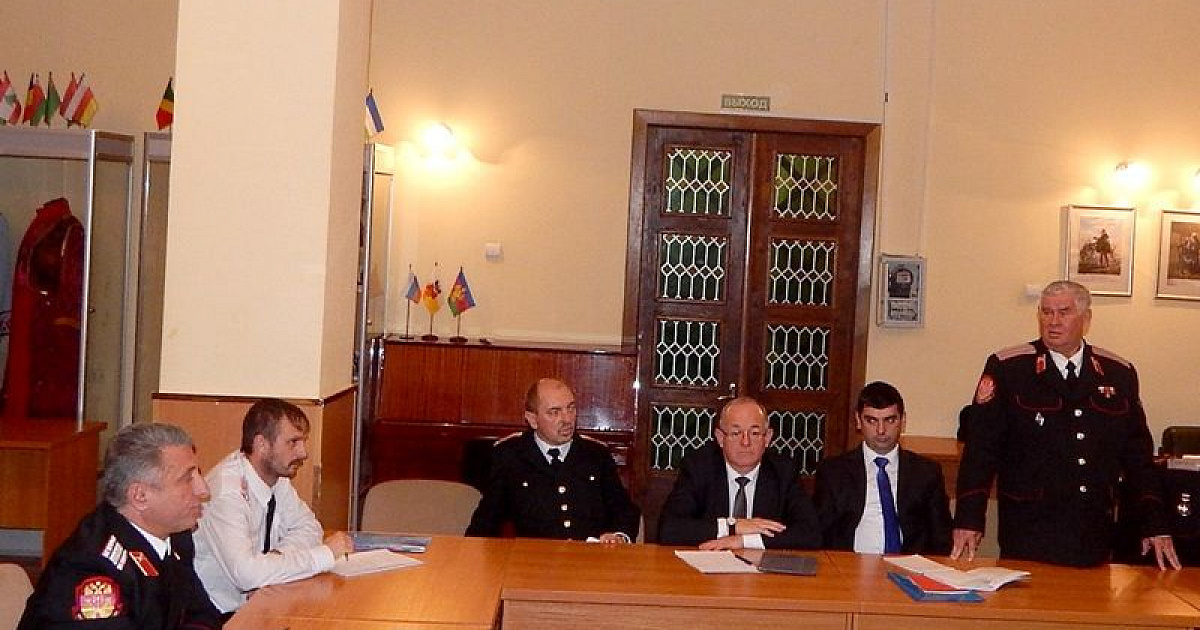 В центре национальных культур собрались: заместитель главы города Краснодара Сергей Васин; помощник атамана ККВ казачий полковник Петр Петренко, советник атамана ККВ подъесаул Роман Мартыненко, атаман Екатеринодарского казачьего отдела войсковой старшина Виктор Светличный, атаманы первичных казачьих обществ города.