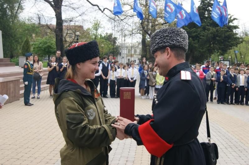 15 апреля казаки Екатеринодарского районного казачьего общества, ветераны Великой Отечественной войны, студенты Краснодарского Института культуры, представители общественных организаций, жители и гости города собрались у Памятника советским воинам-освободителям города Краснодара, чтобы встретить участников автопробега «Звезда нашей Великой Победы».