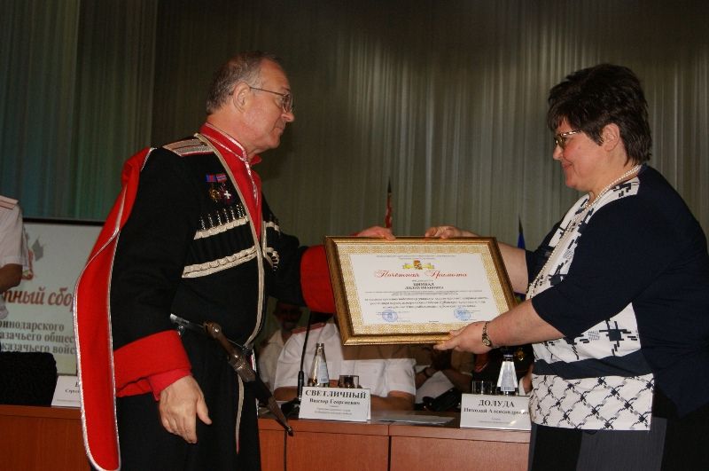В завершение сбора атаман Сергей Васин вручил почётные грамоты директорам казачьих школ города, поблагодарив за работу с казачьей молодёжью.