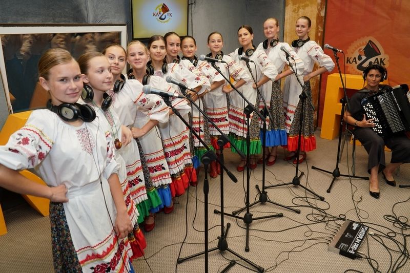 В эфире «Казак ФМ» целый час звучали песни открытого образцового художественного коллектива «Ладушки». От Кубани до Крыма радиослушатели смогли оценить девять казачьих песен в исполнении задорных детских голосов.