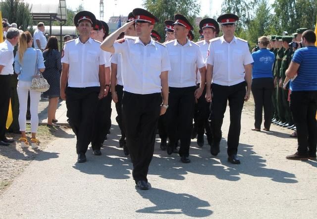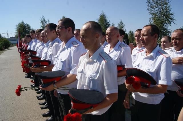 Казаки Екатеринодарского районного казачьего общества возложили цветы к могиле Трошева, после чего вместе с военнослужащими Краснодарского гарнизона прошли торжественным строем.