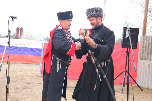 Атмосфера праздничного веселья с самого утра царила и на полуострове за автовокзалом «Южный». Здесь, по сложившейся традиции, развернулись торжества, организованные хуторскими казачьими обществами «Ореховатое» и «Офицерская казачья сотня».