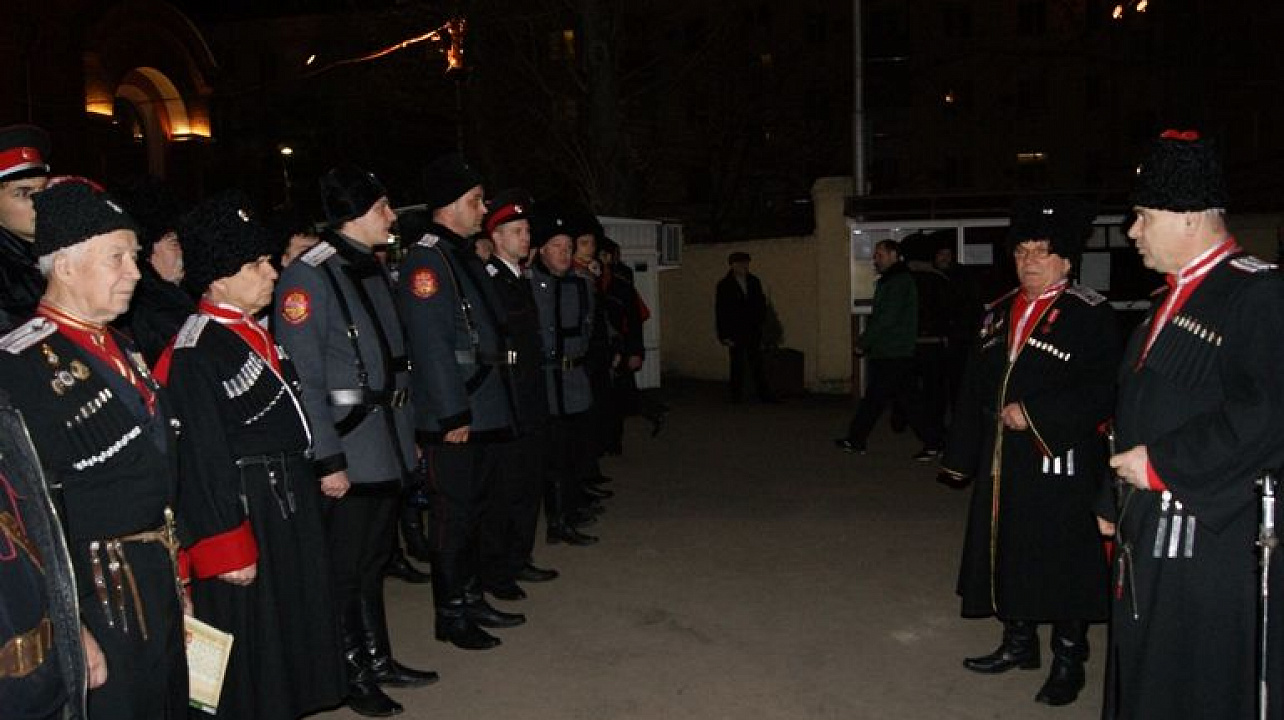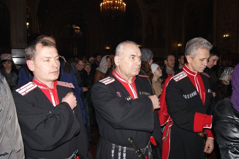 В пятницу в ночь с 18 на 19 января в Свято-Екатерининском Кафедральном Соборе Краснодара состоялось праздничное богослужение, посвященное празднику Святого Богоявления — Крещения Господня, в котором приняли участие 50 казаков Екатеринодарского районного казачьего общества.