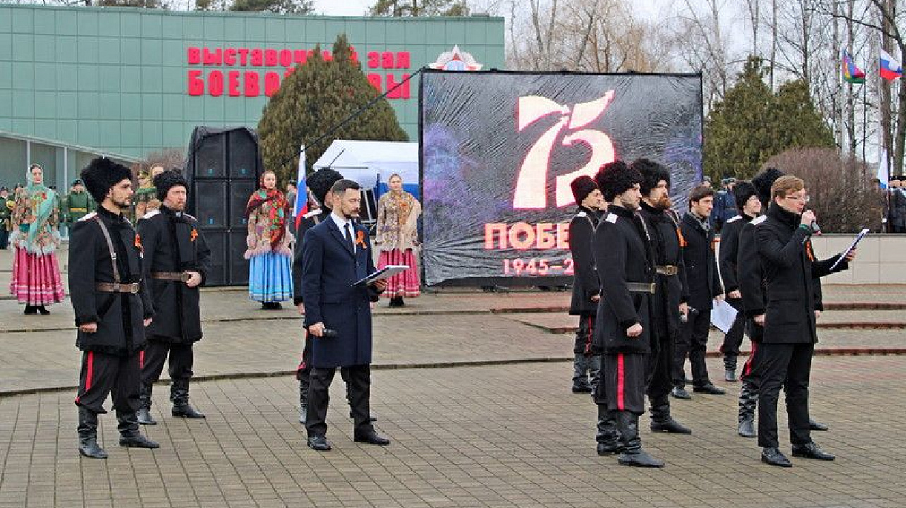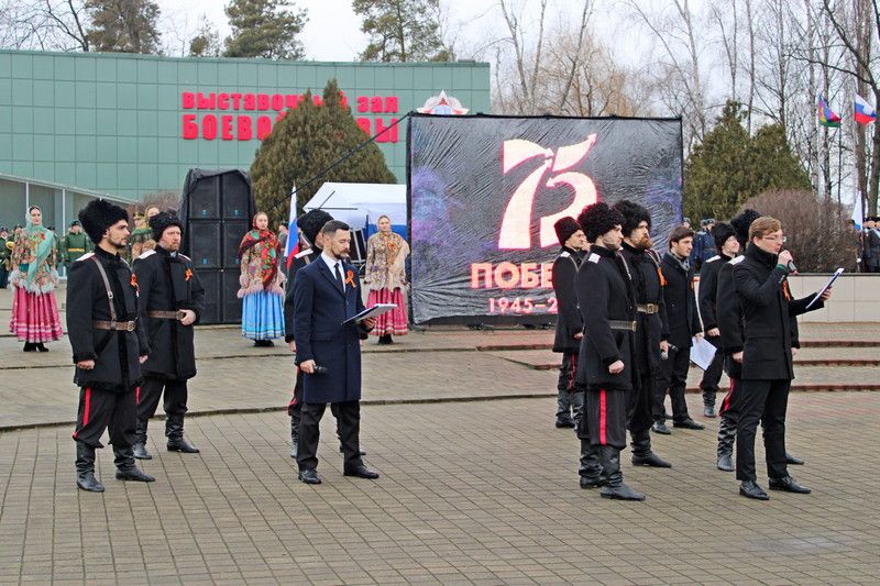 После торжественного открытия мероприятия парадные колонны строевым маршем направились вдоль зала боевой славы, в их числе были 2 парадные колонны казаков-дружинников Екатеринодарского РКО, которые несут службу по охране правопорядка. Закончилось мероприятие минутой молчания и возложением цветов, в честь всех павших воинов, отдавших жизнь за Отчизну в годы Великой Отечественной Войны.