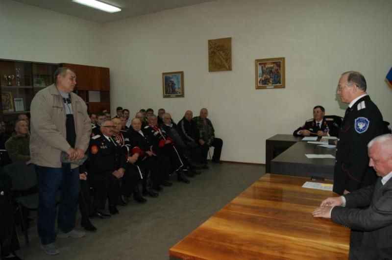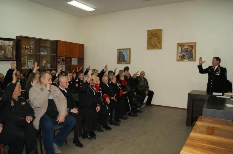 Исполняющий обязанности атамана Екатеринодарского районного казачьего общества есаул Сергей Васин встретился с казаками станицы Елизаветинской
