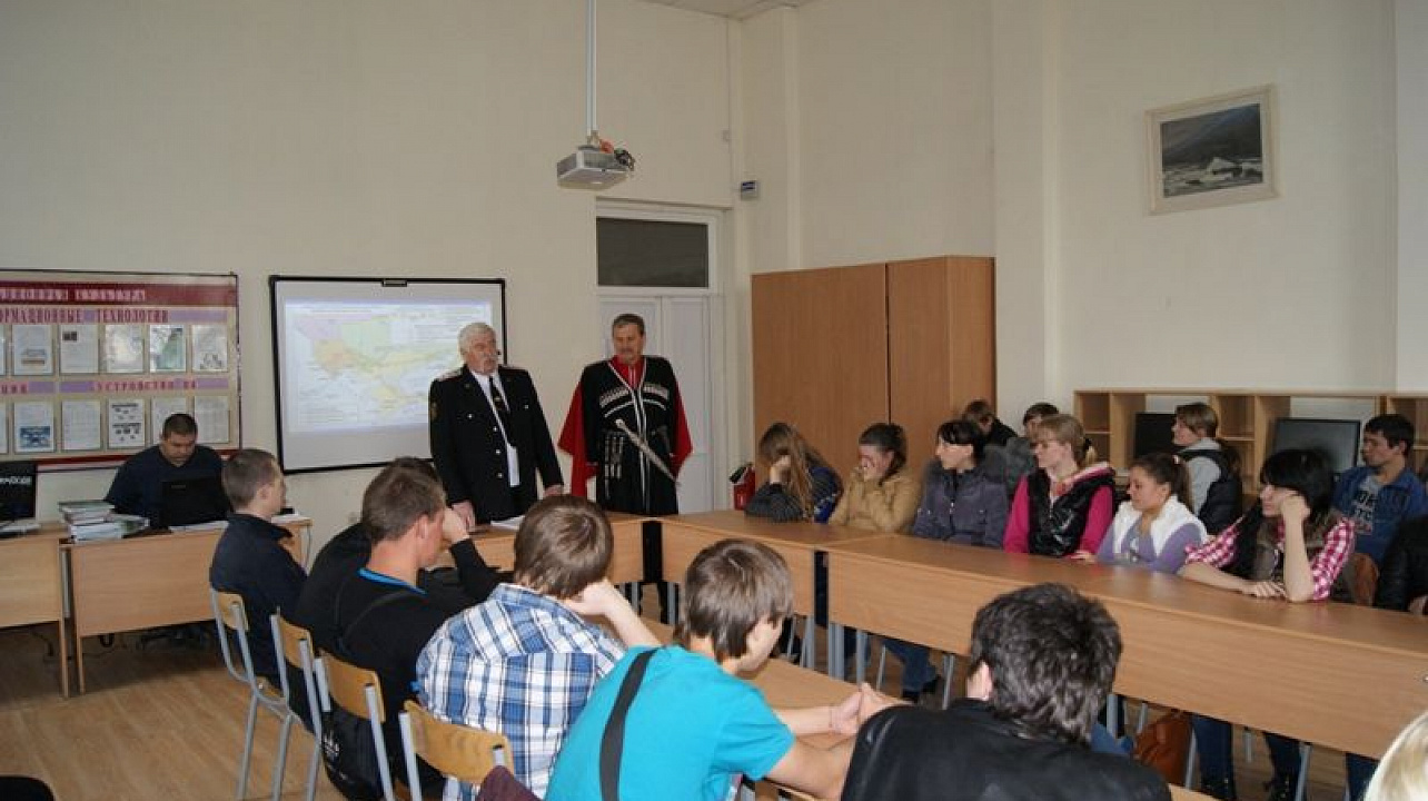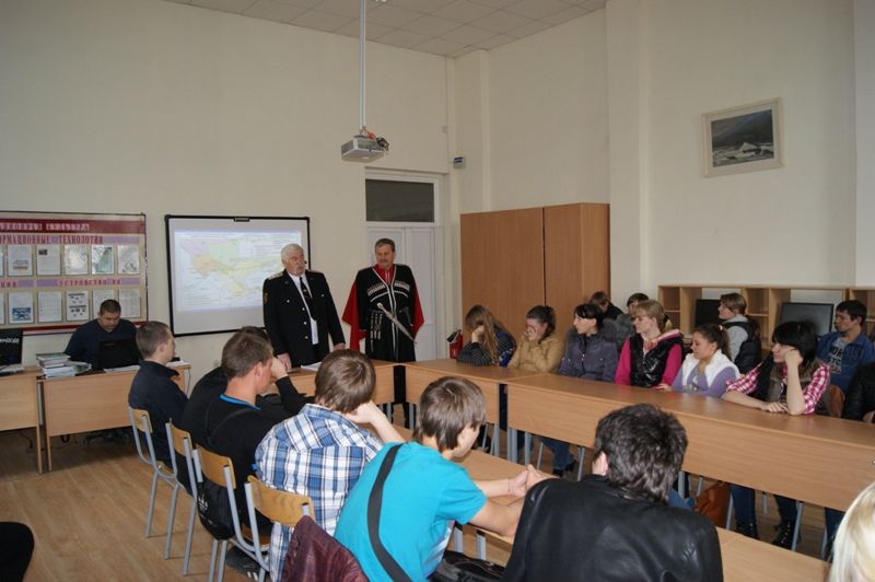 16 и 17 Апреля казаки хуторского казачьего общества «Офицерская казачья сотня» Екатеринодарского районного казачьего общества провели встречи со студентами Краснодарского технологического колледжа и лицея №75.